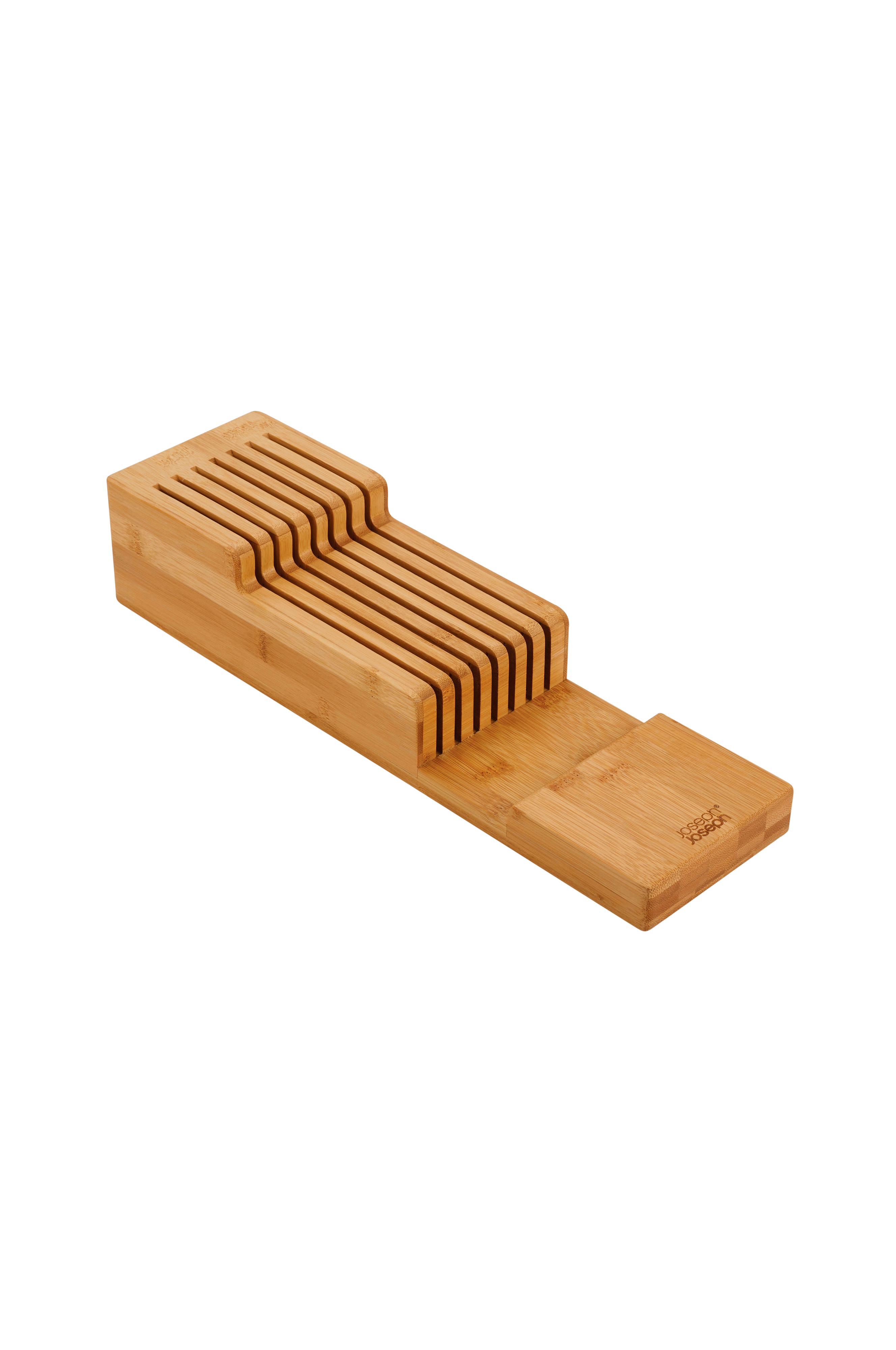 Detta knivställ är den perfekta lösningen som ger både säker förvaring och enkel åtkomst för ett antal köksknivar. Den har två nivåer för olika bladlängder och rymmer upp till nio knivar i ett snyggt, kompakt utrymme. Halkfria fötter på basen hindrar enheten från att glida runt i lådan.