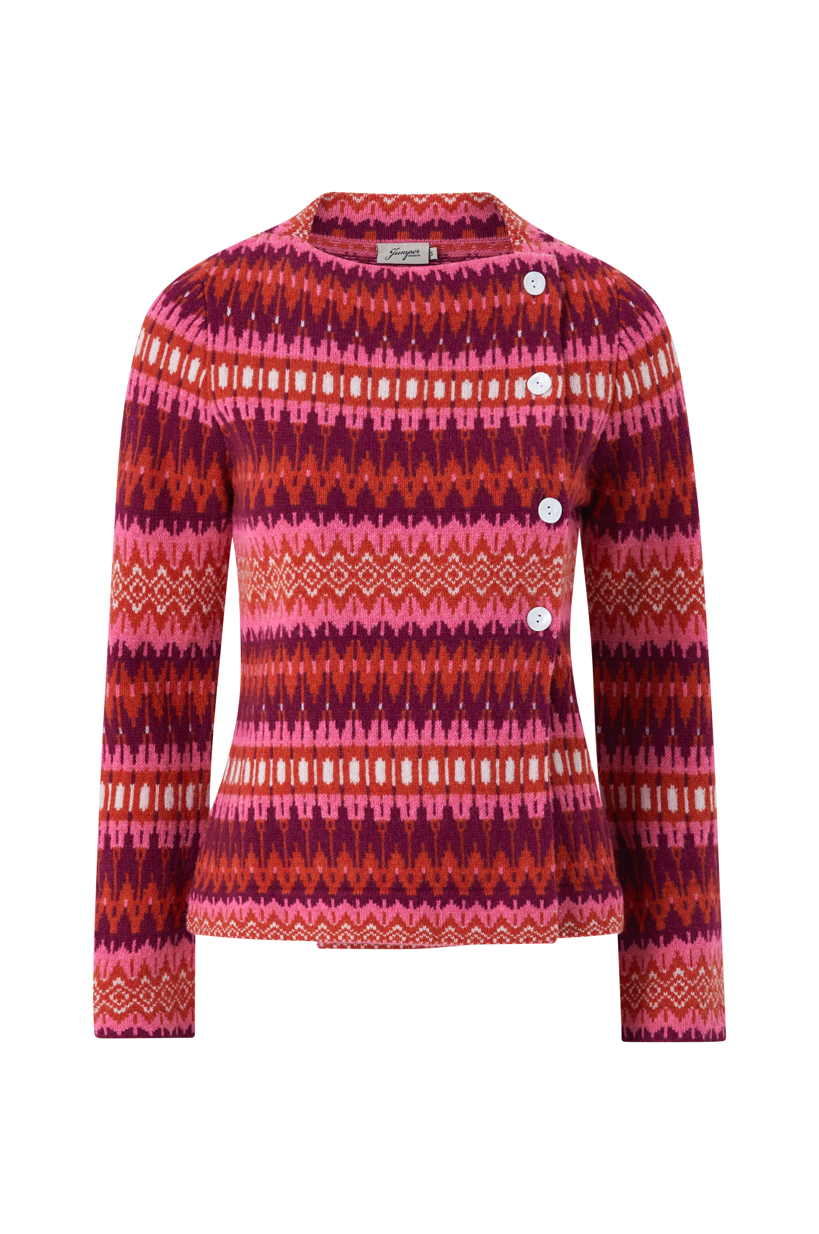 • Mönsterstickad cardigan i lammull• Asymmetrisk knäppning fram• Lätt utsvängda ärmar