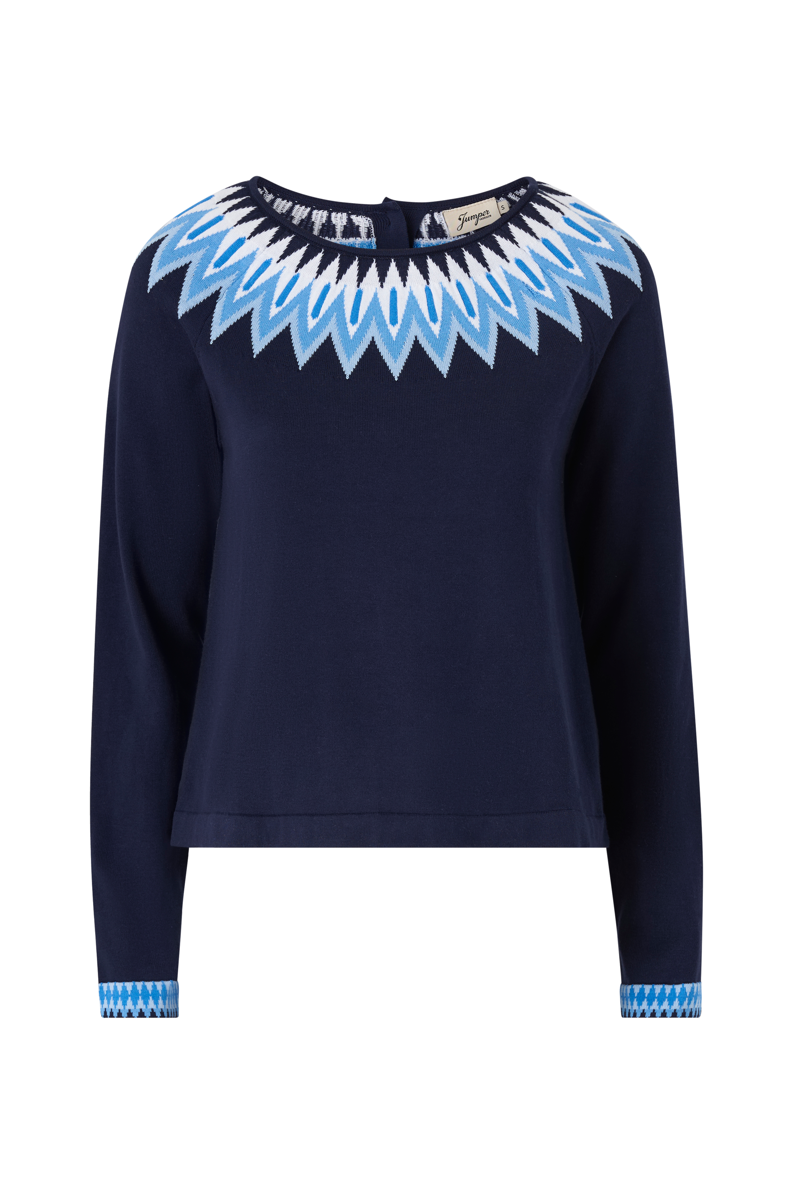 • Stickat mönster upptill runt om och i ärmsluten