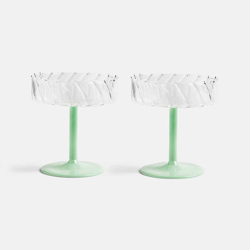 Fira ett speciellt ögonblick med dessa glas! De är perfekta för mousserande champagne och ser fantastiska ut på alla bord på grund av den ljusa färgen och retroformen. Tål inte diskmaskin. Material: Glas.