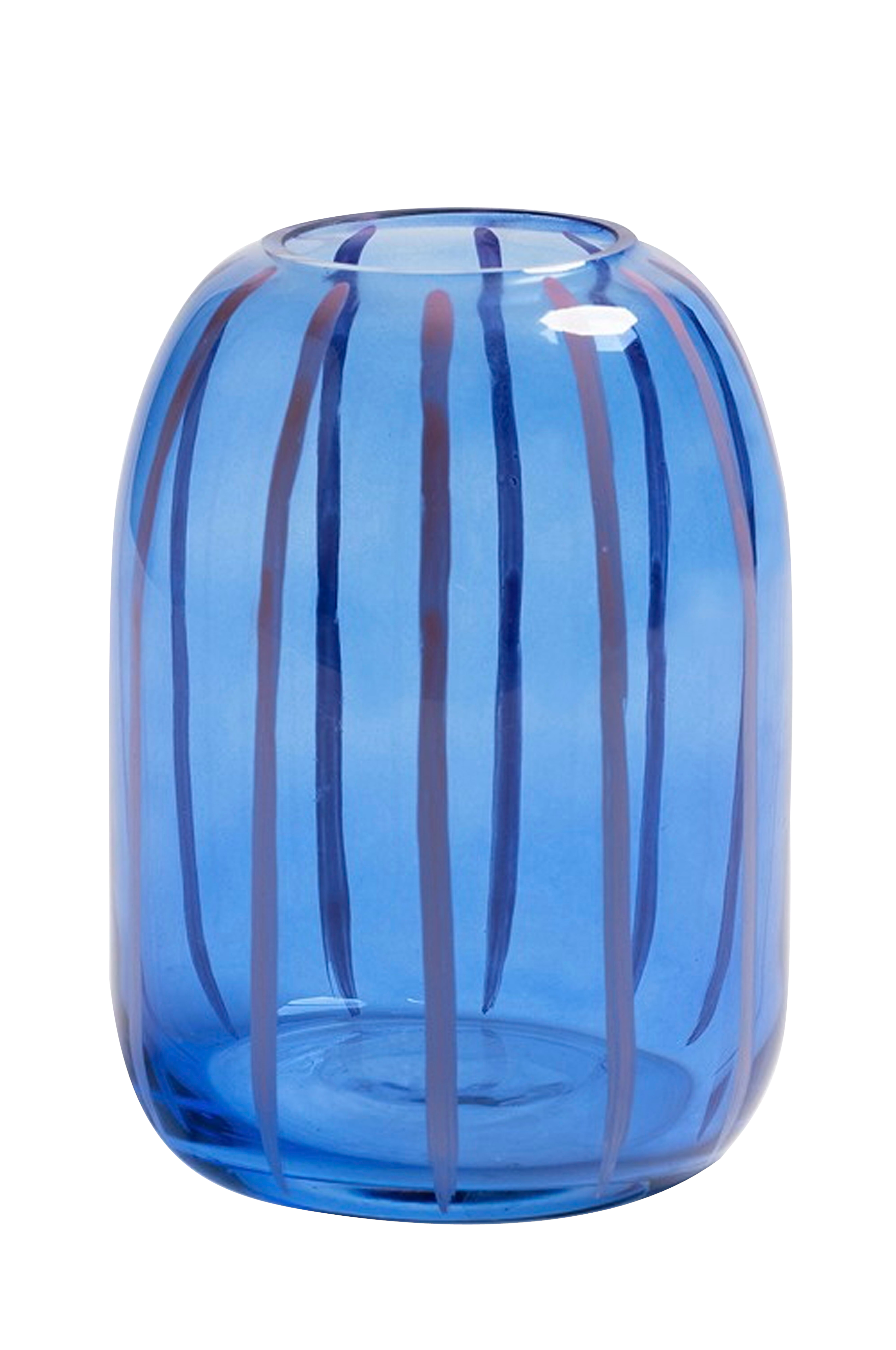 Vasen Sweep skapar färgsprakande i alla rum. De handmålade ränderna i kombination med det ljust färgade glaset skapar en dekorativ vas med eller utan blommor. Skölj med ljummet vatten för rengöring. Material: Glas. Ø 9.5 cm.