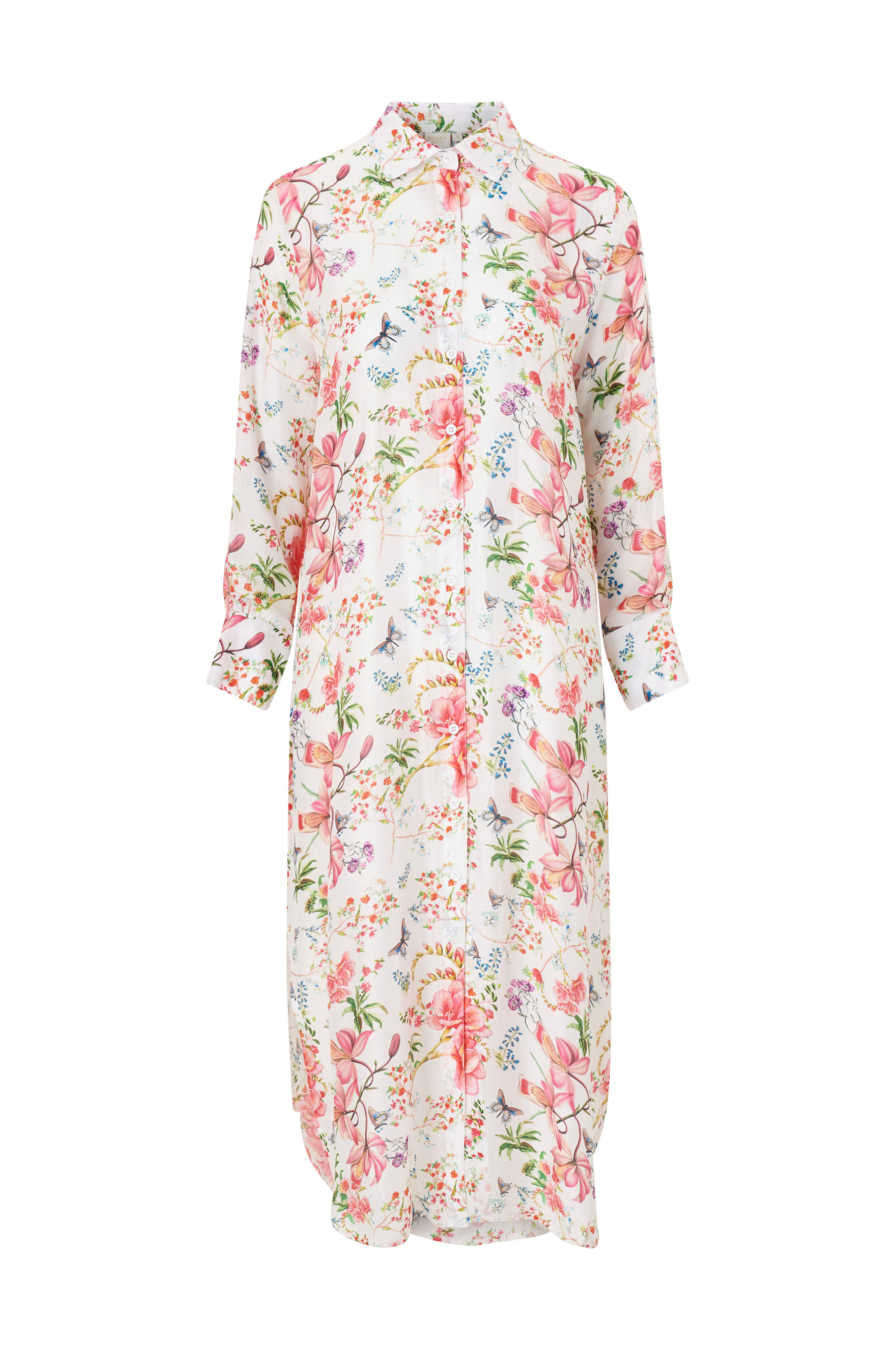 • Lång skjortklänning med knappar hela vägen fram• Liten krage• Lång ärm med manschett och invändig tamp• Rundade sprund nedtill i sidorna• Längd: 124 cm i storlek S