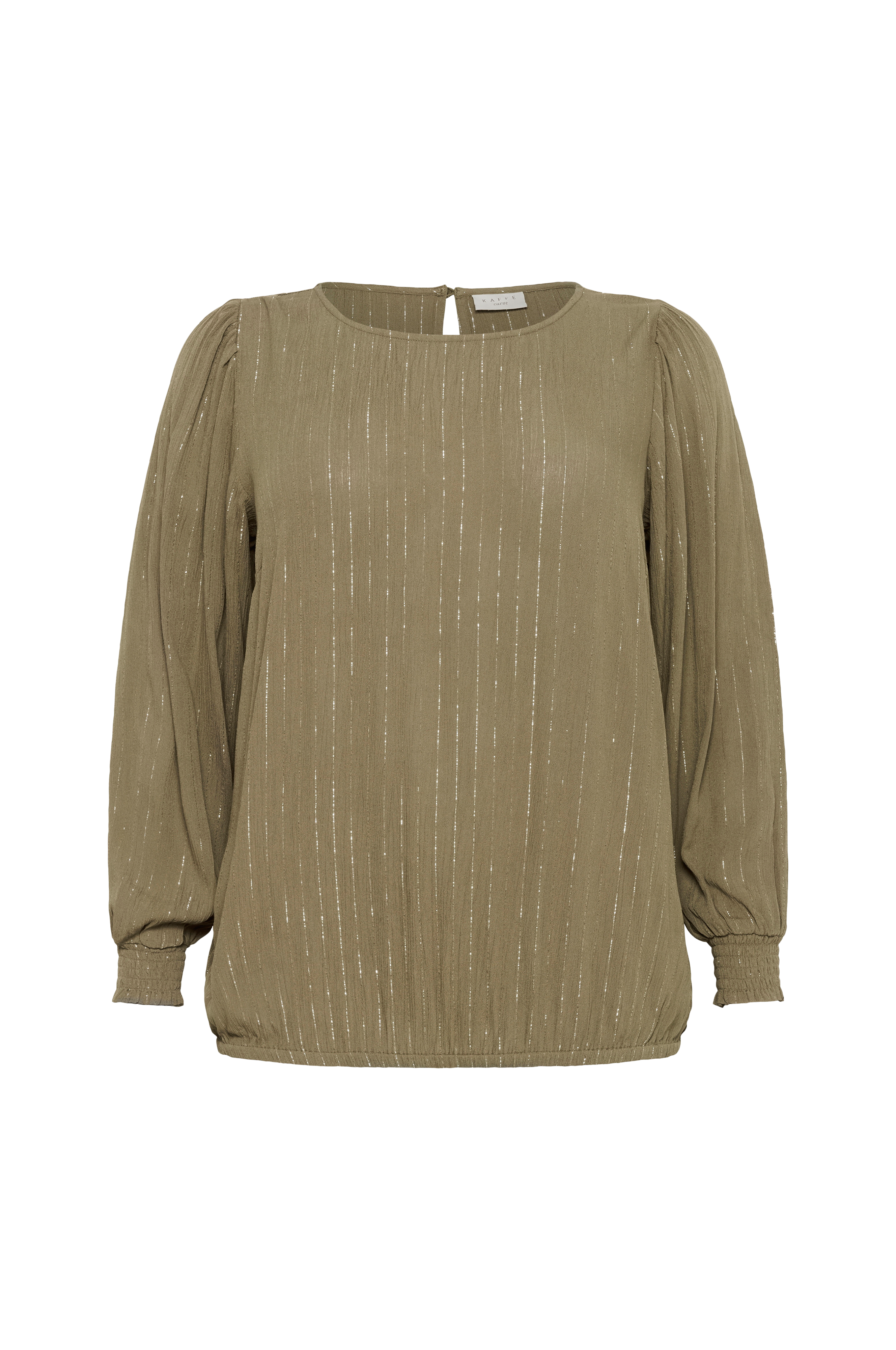 • Plusstorlekar• Rak modell i kräppkvalitet med silvriga ränder• Rund hals med knapp i nacken• Lång, vid ärm med smock i ärmsluten• Resår i nederkanten