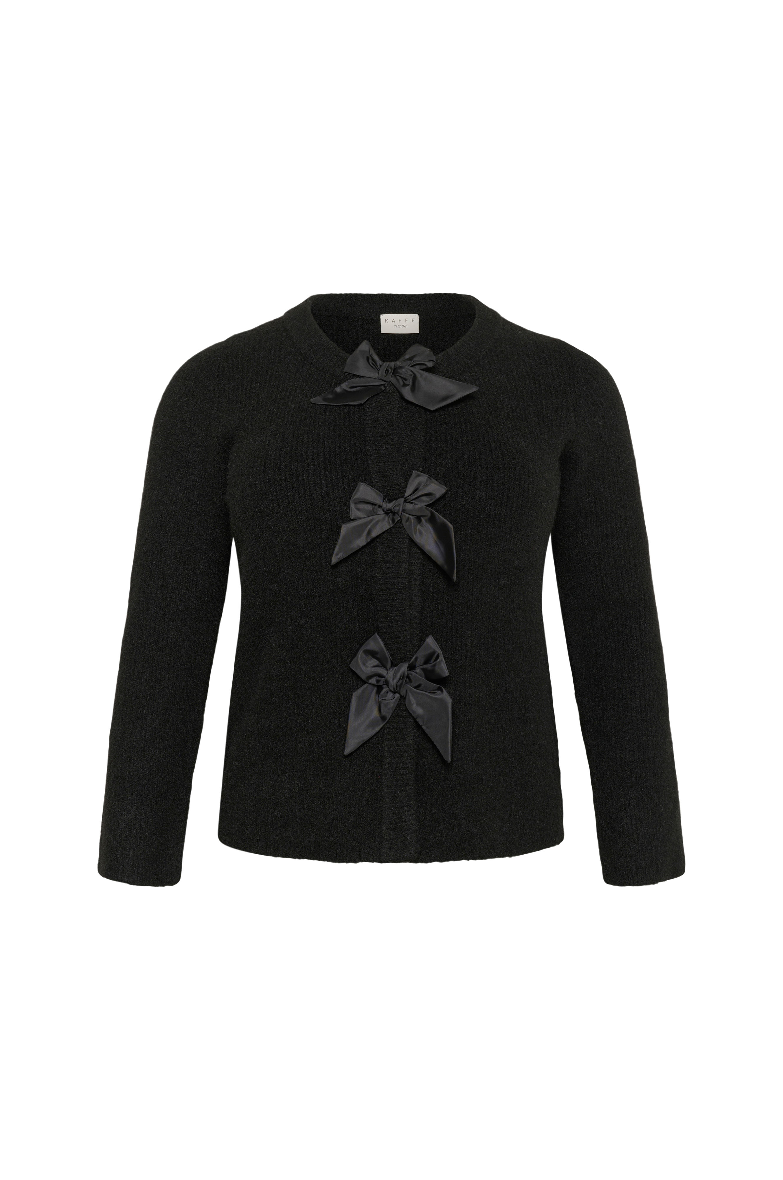 • Mjuk, ribbstickad cardigan i ullmix• Rund, ribbad halsringning• Tryckknappsstängning med dekorativa rosetter fram• Långa, avsmalnande ärmar• Plusstorlekar