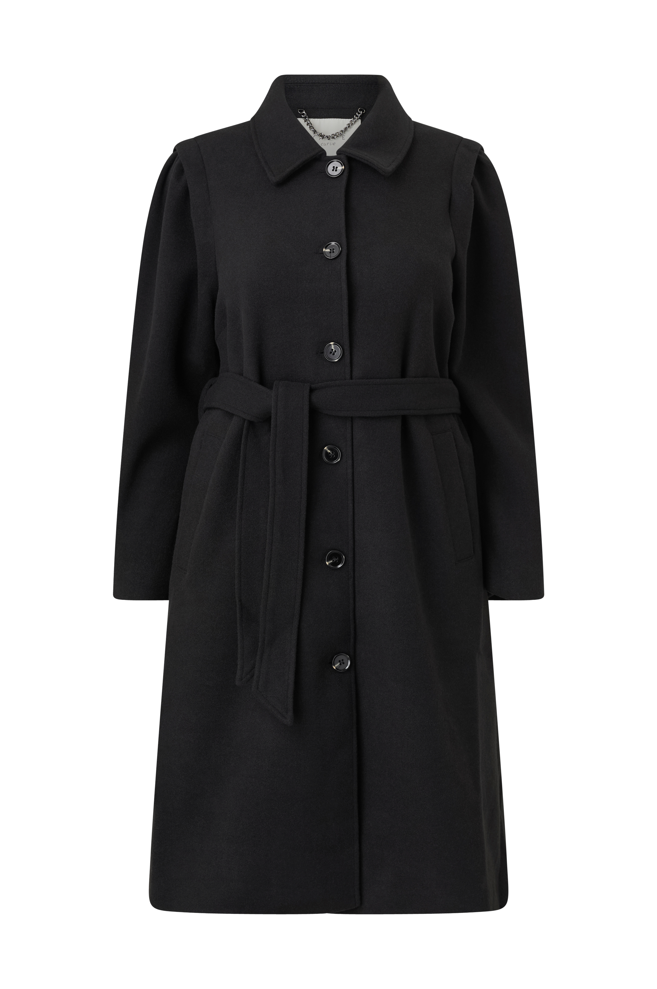 • Kappa med midjebälte• Krage• Kantdetalj vid axeln• Långa puffärmar• Knappstängning• Sidfickor• Slits nedtill bak• Plusstorlekar• Längd: 113 cm i storlek 44
