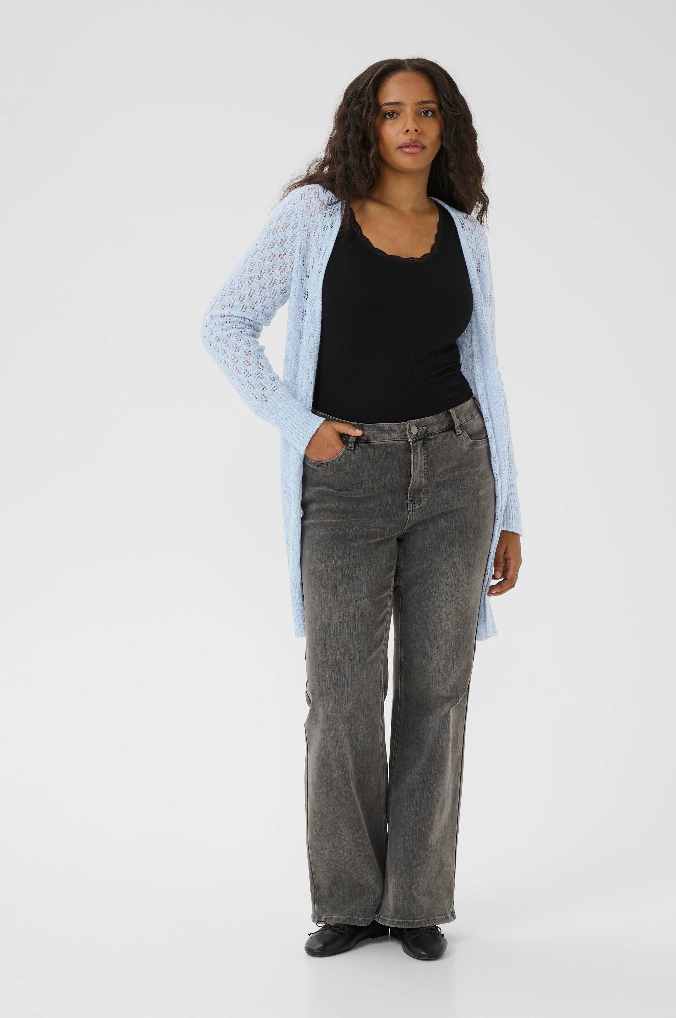 • Lång, öppen kofta• Mjukt, hålmönstrat material• Långa ärmar• Plusstorlekar