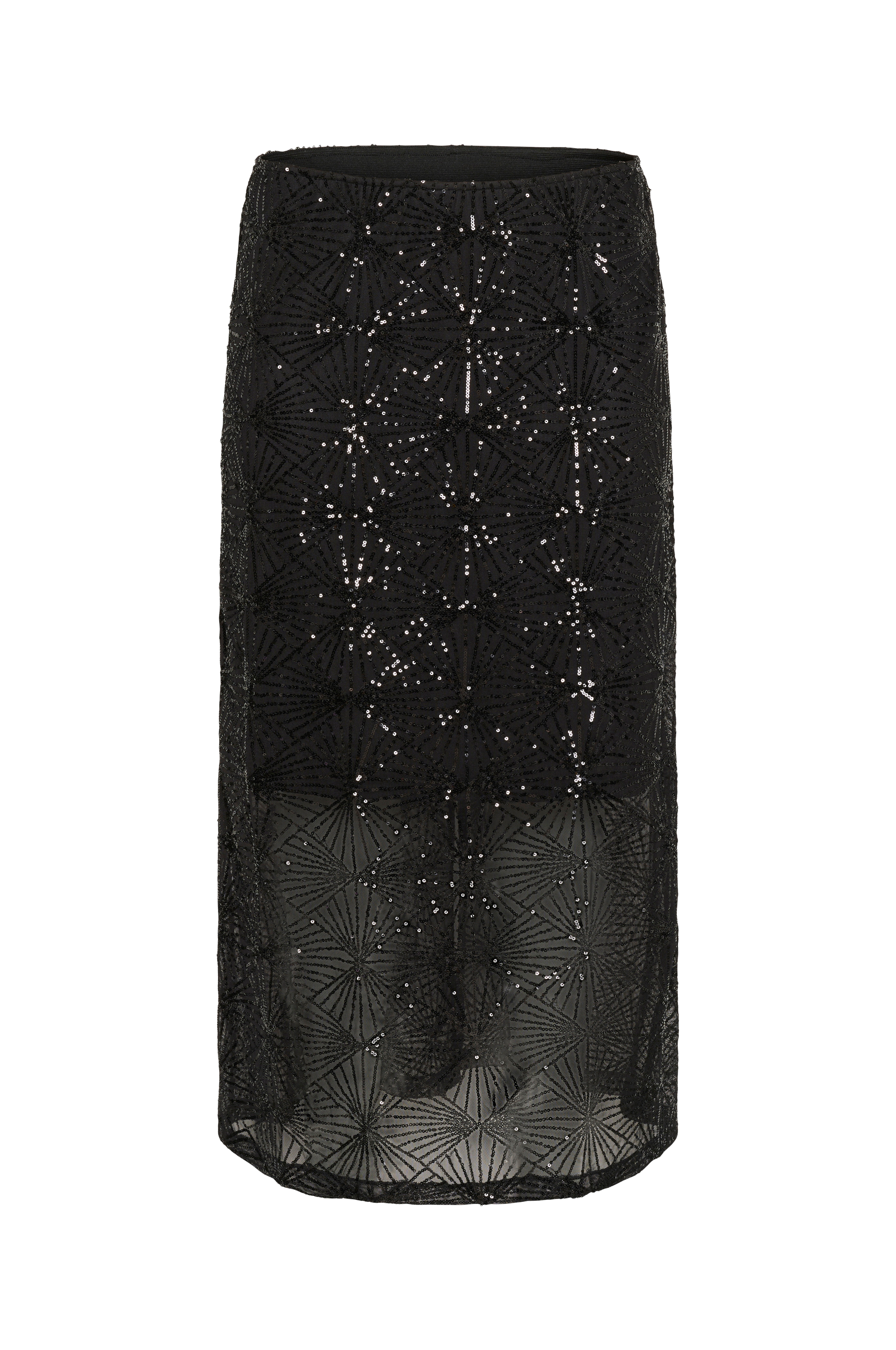 • Lång kjol i mesh med paljetter