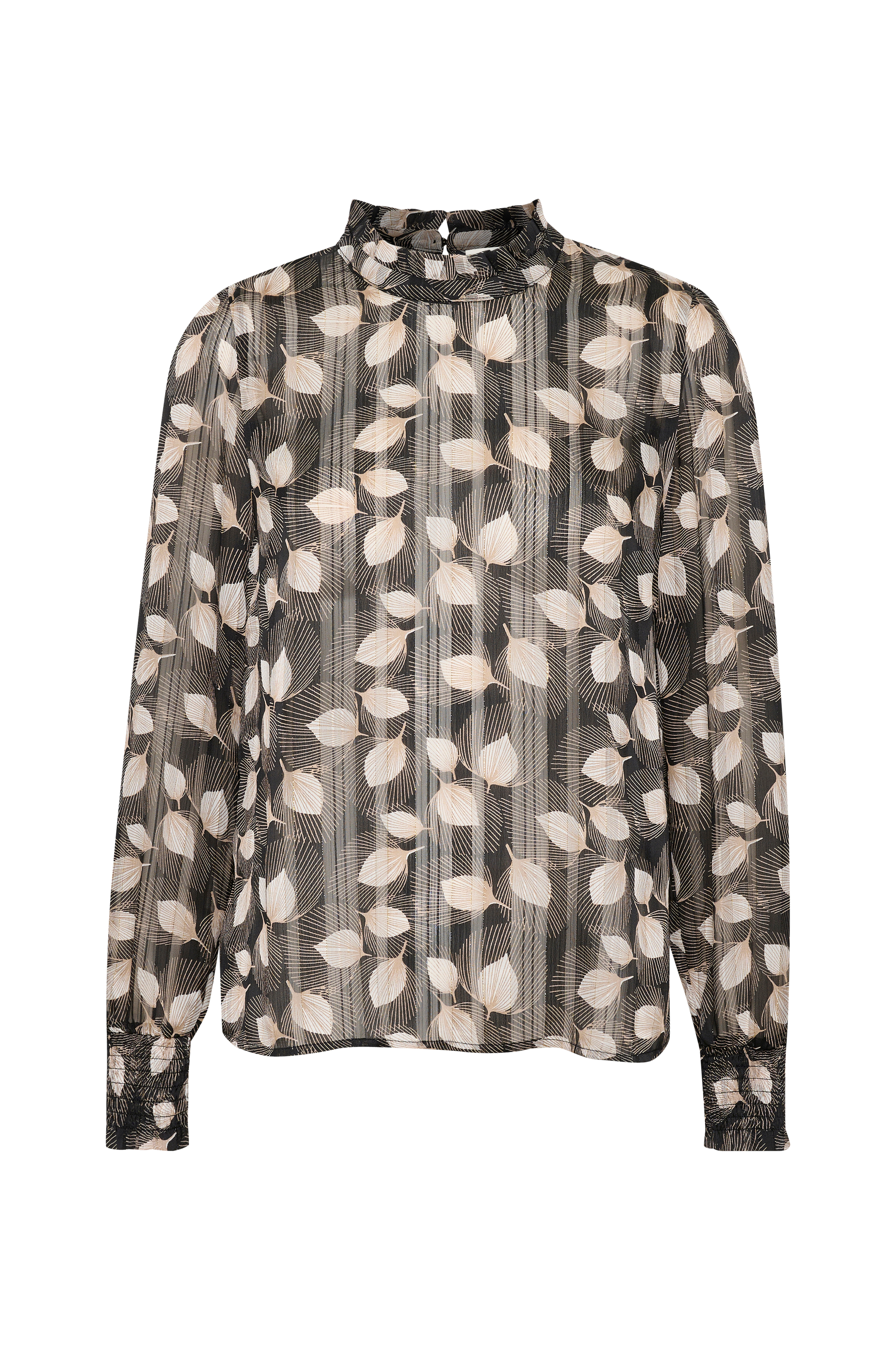 • Rak modell i chiffong• Halvhög krage med liten volang• Lång puffärm med smock i ärmsluten