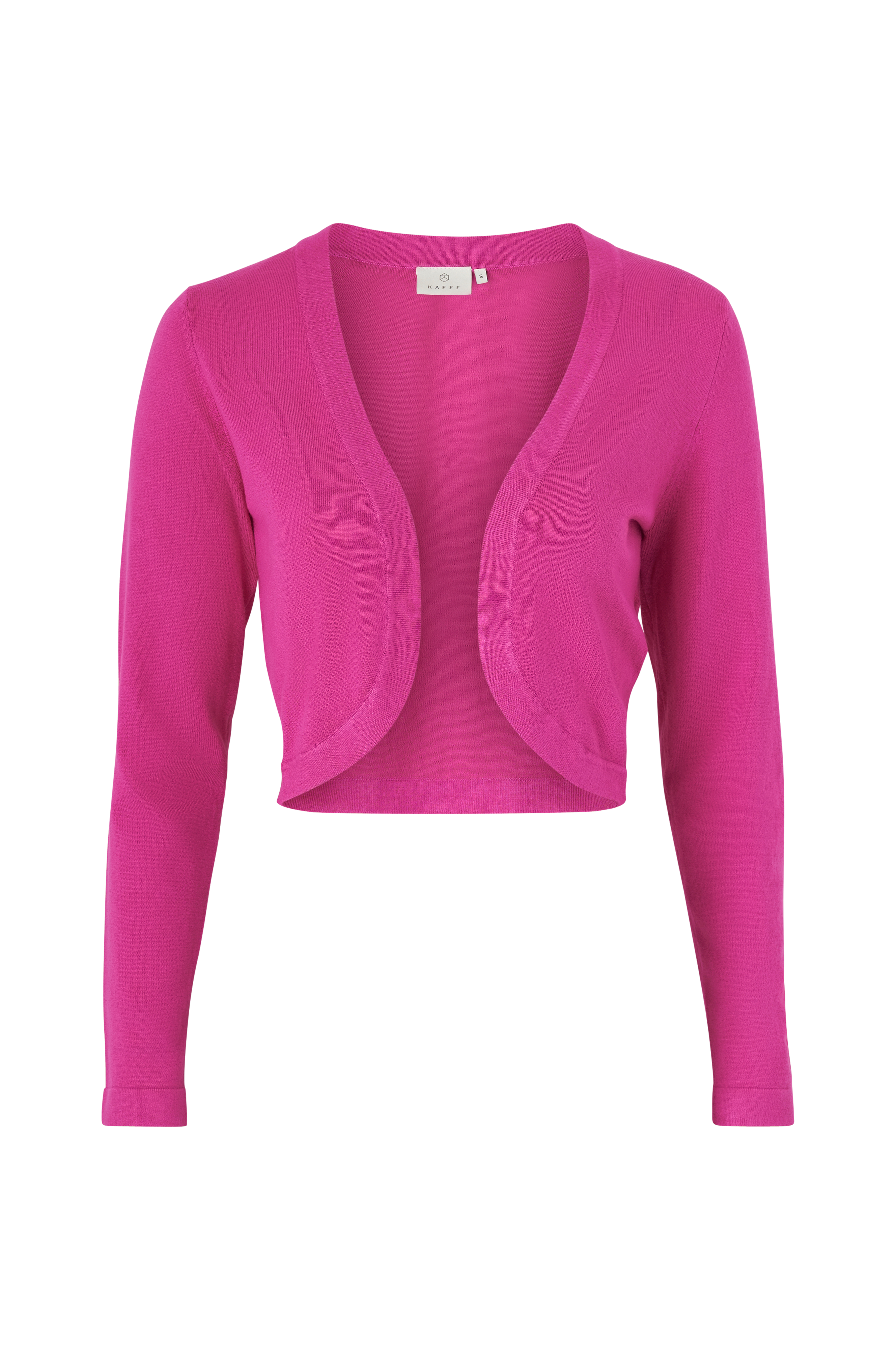 Finstickad bolero Astrid från Kaffe i öppen, kort modell. Lång ärm.