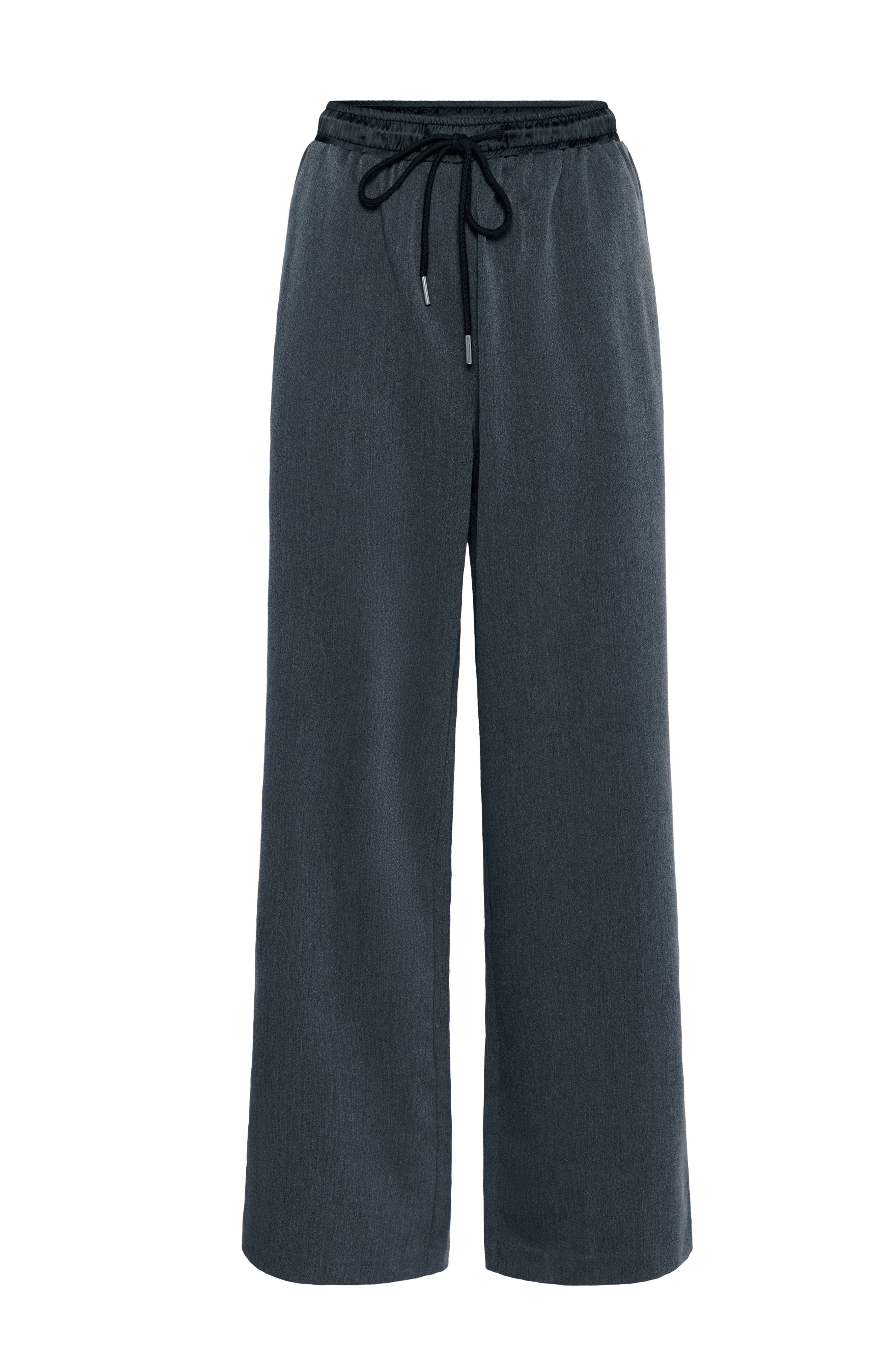 • Elastisk midja i satin med dragsko• Raka ben med lös passform• Sidfickor• Fuskficka bak• Beninnerlängd: 77 cm i storlek 36