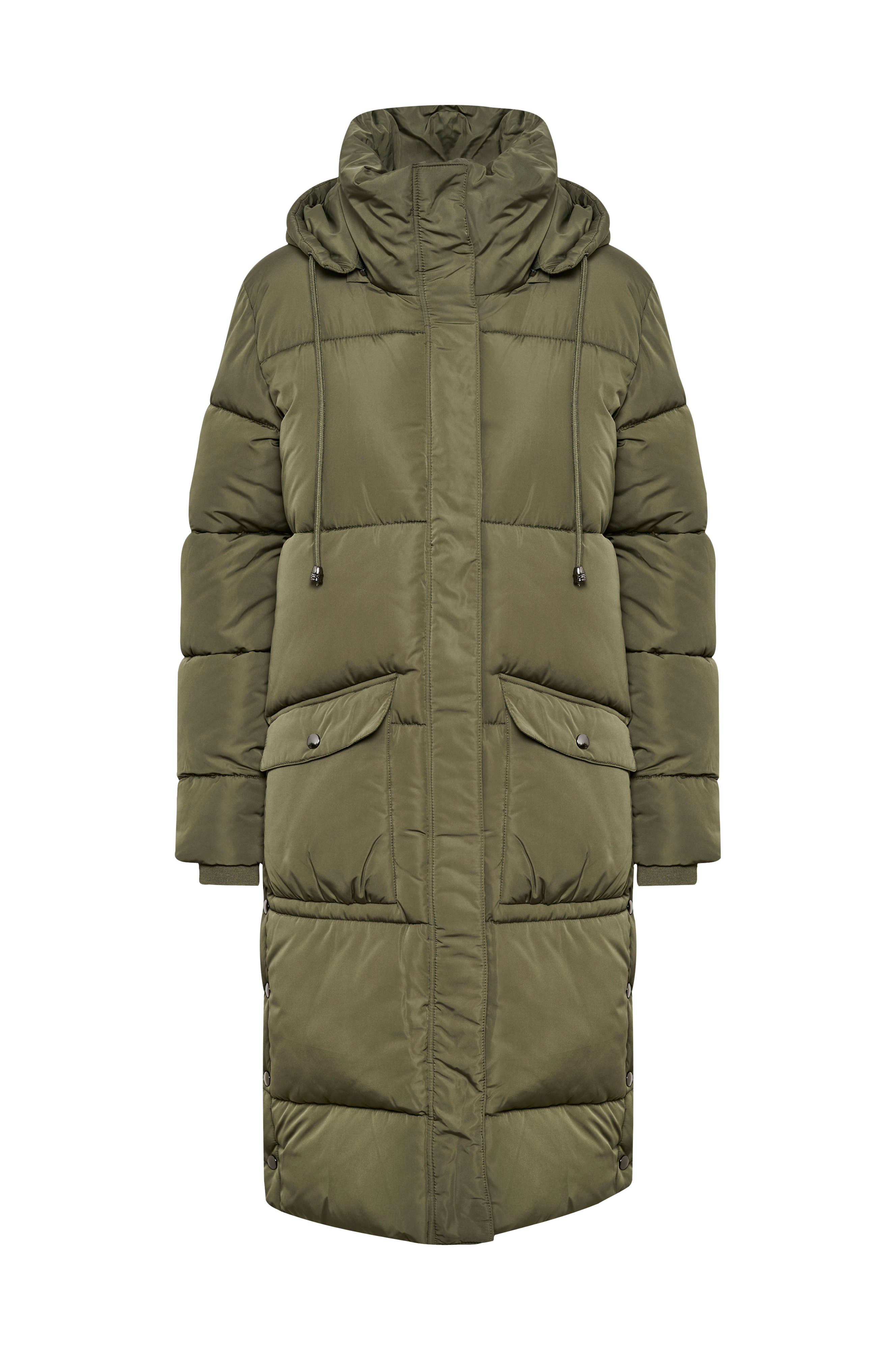 • Vadderad kappa• Dragkedja fram• Vindslå med tryckknappar• Ståkrage• Avtagbar huva• Mudd i ärmsluten• Fickor fram• Tryckknappar nedtill i sidorna för justerbar vidd• Längd: 99 cm i storlek 36