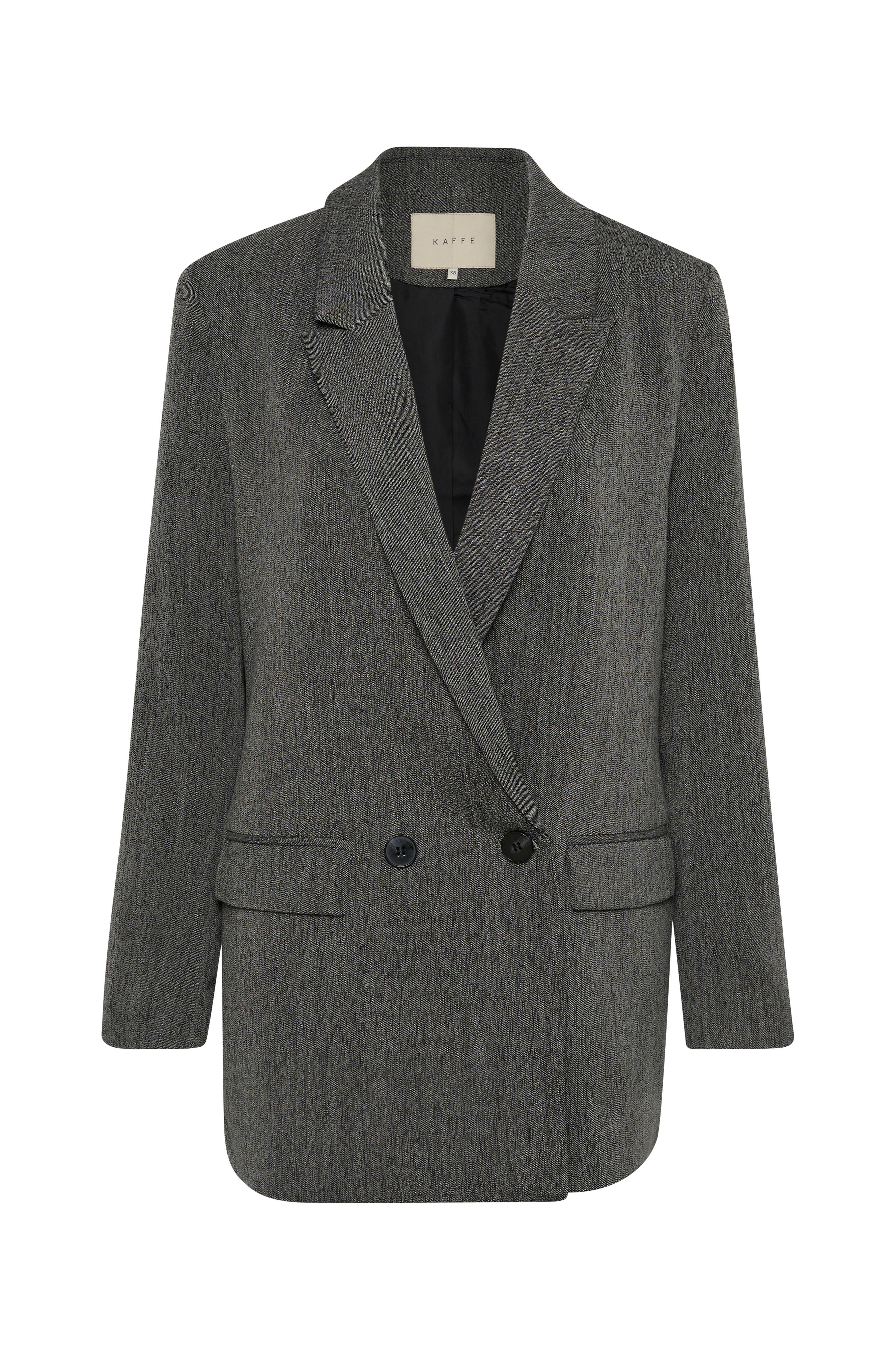 • Kavaj med lös passform• Dubbelknäppt modell• Lätt vadderade axlar• Två fickor med ficklock• Vävt, slätt foder• Längd: 77 cm i storlek 36