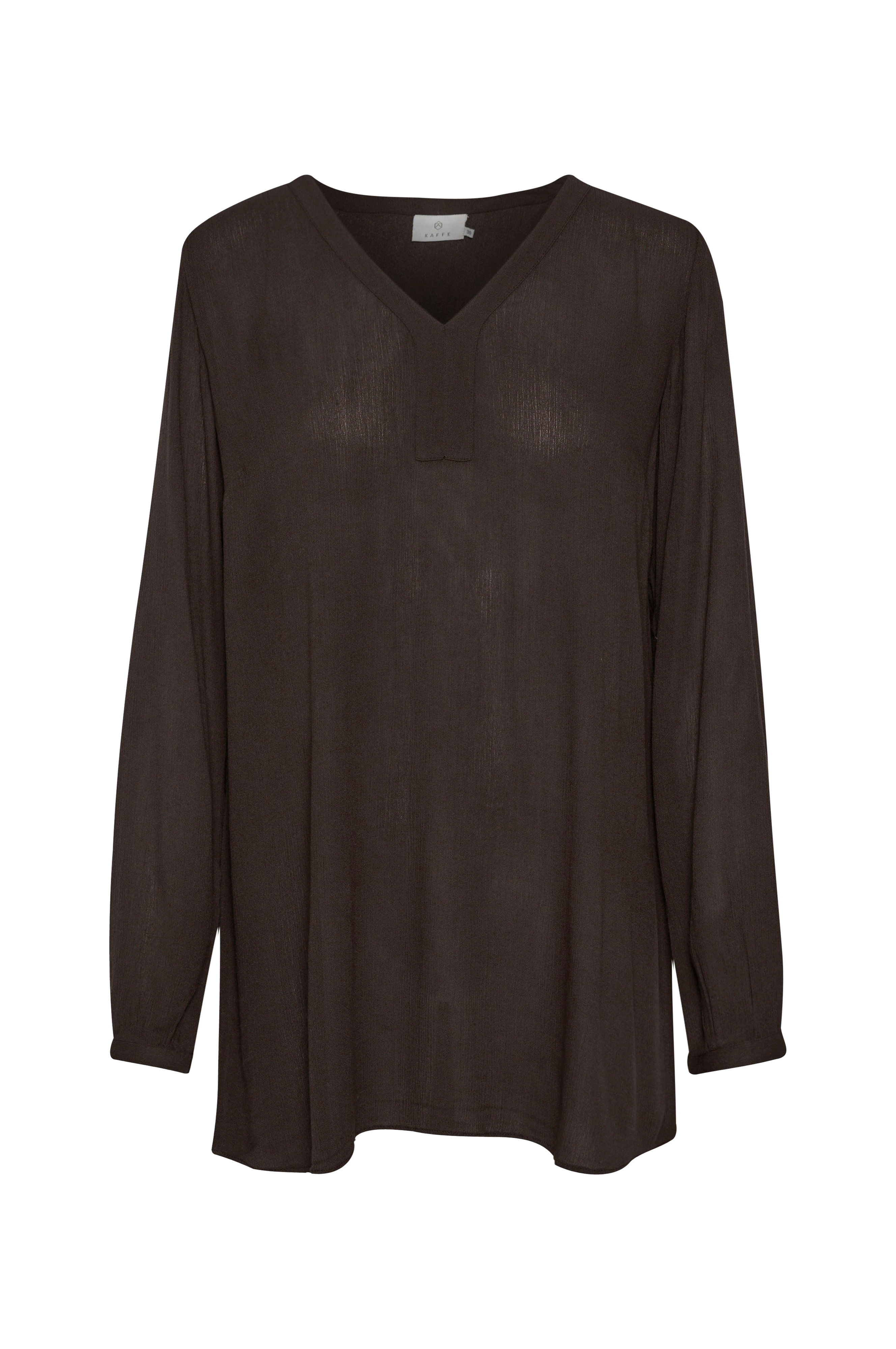 • Rak modell i kräppkvalitet• V-ringad hals• Lång ärm med smal manschett• Lätt rundad nederkant