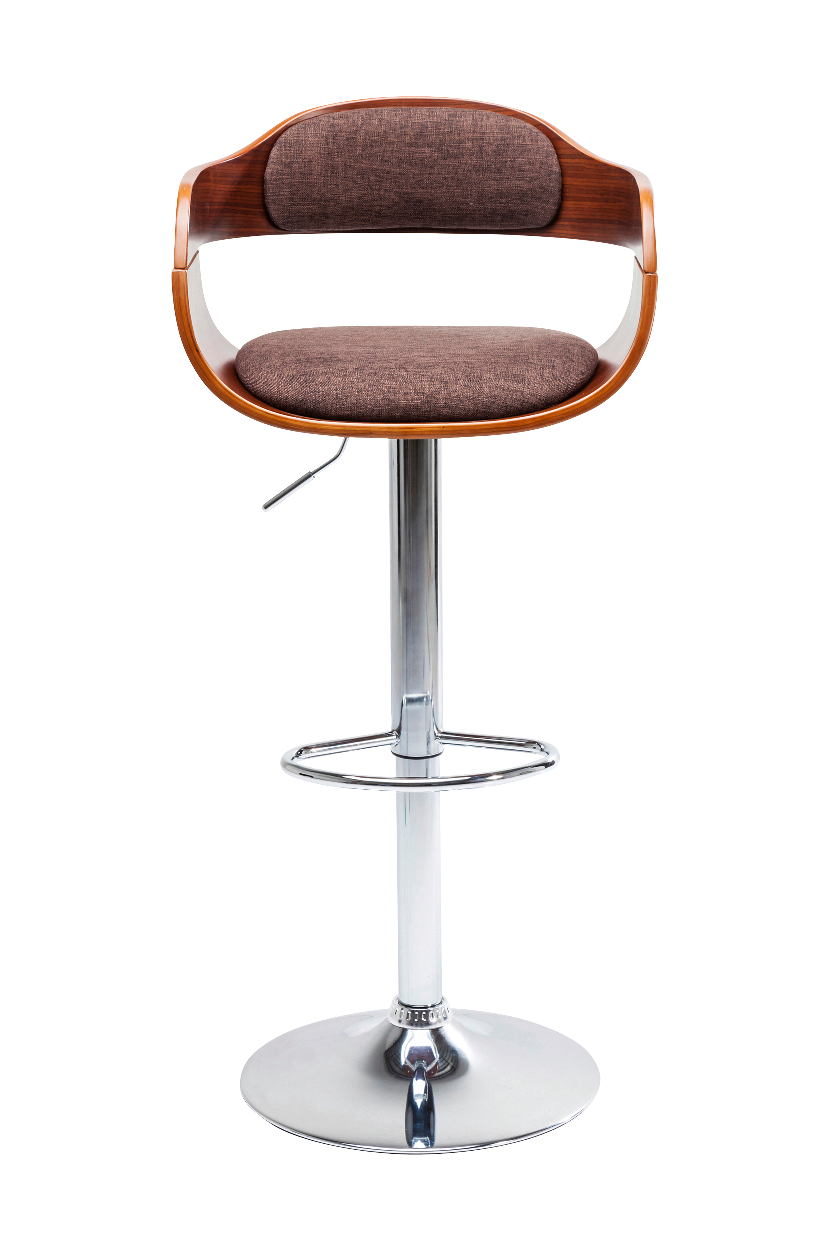 Denna eleganta barstol i charmig retrostil och elegant design ger ett storslaget intryck. Harmonierande färger, kurvad sits av träfaner och skimrande fot av kromad metall, gör denna stol särskilt tilltalande. Lätt stoppning på sits och ryggstöd och praktiskt fotstöd, ger hög komfort. Sitthöjden kan justeras individuellt med en gas lift. Perfekt i köket och baren.