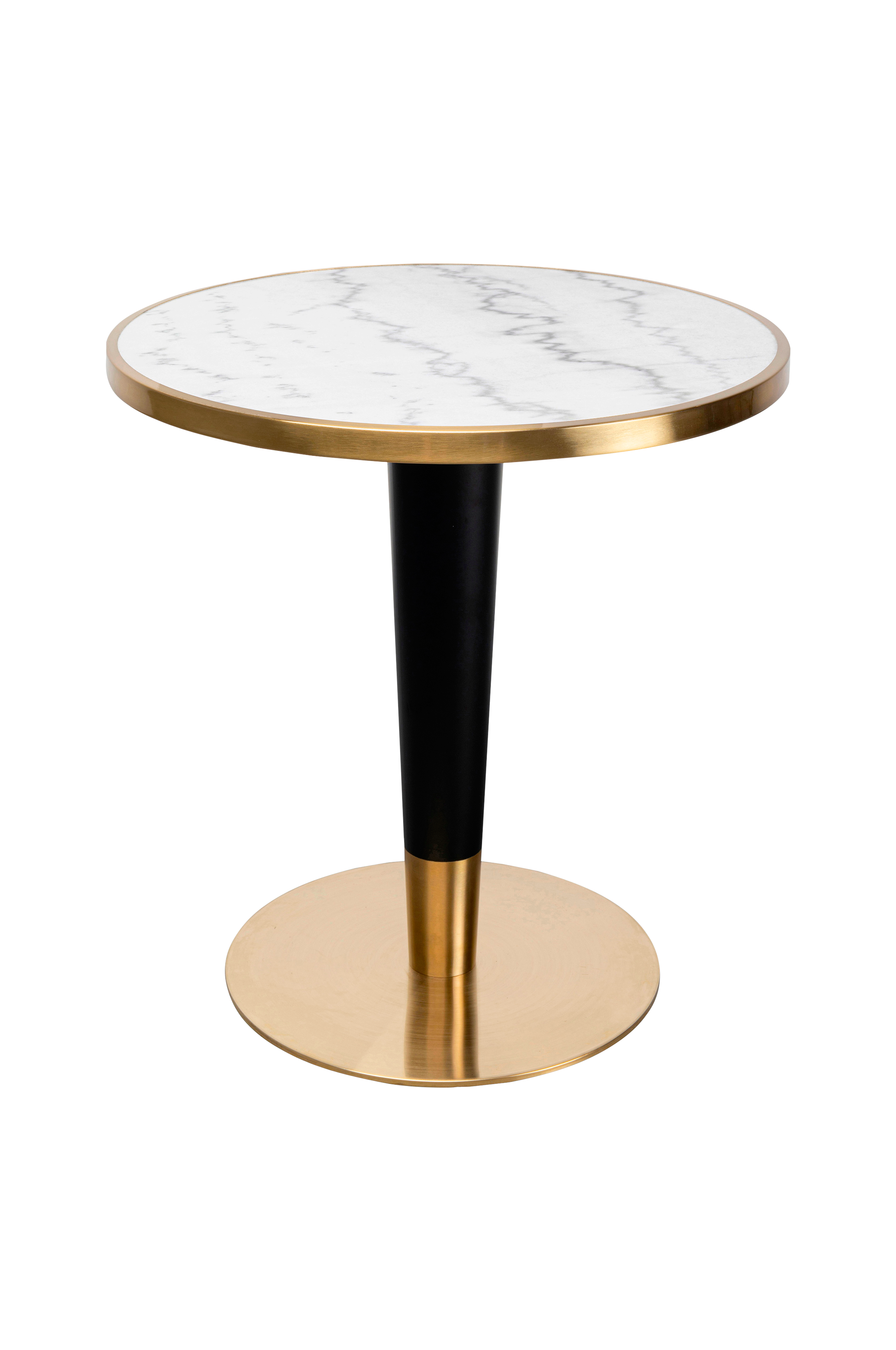 Om du föredrar en look utan volanger är det här bistrobordet i modern retrostil helt rätt för dig. Den höga kvaliteten och den fina designen gör det till en riktig pärla. Små, runda bord fyller många funktioner och är en mångsysslare när det gäller möblering. Bordet i svart och guld passar bra i köket och på balkongen eller terrassen. Det bör dock inte utsättas för väder och vind. Marmorbordet är också en perfekt lösning i hörnet bredvid soffan. Det är tillräckligt högt för att man ska kunna placera en drink eller ett mellanmål över ryggstödet. I hallen ger bordet med mittben både stil och plats för nycklar och annat. Fördelen är att små rum inte ser så röriga ut tack vare det mittersta benet.
