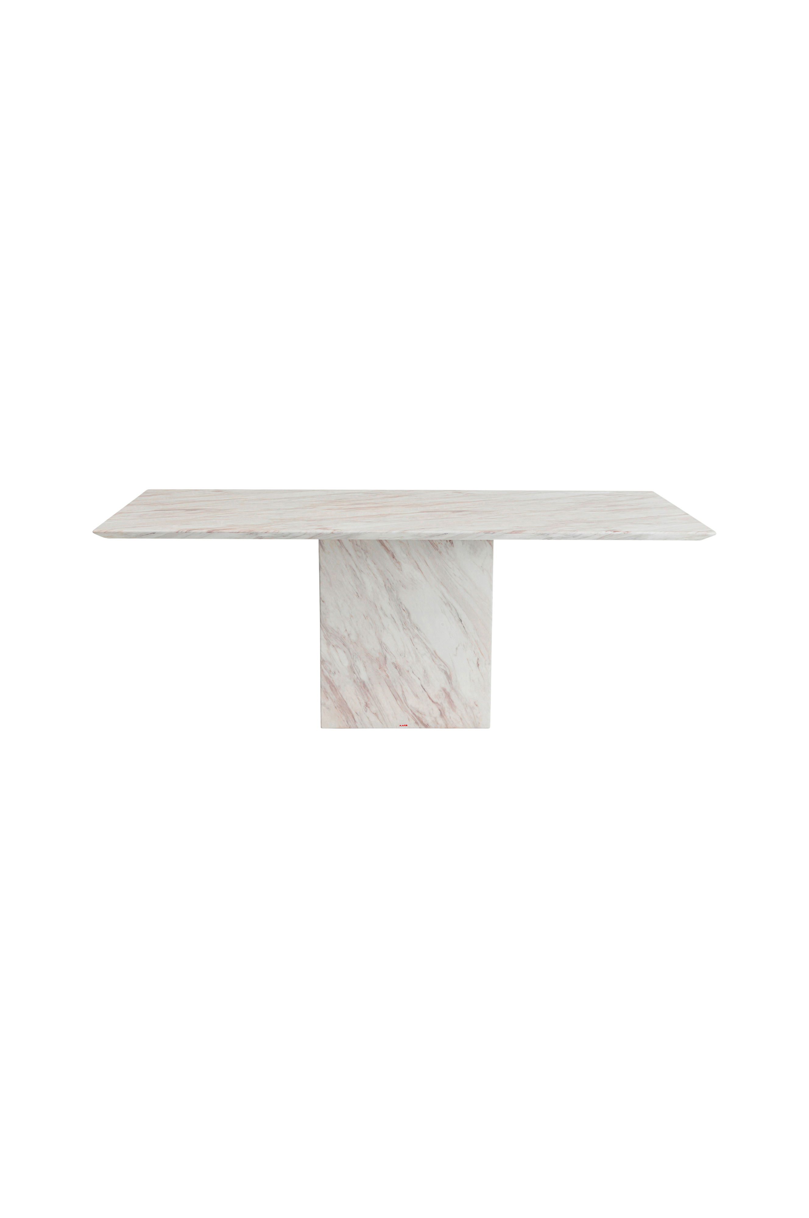 Med sin kubformade bordsskiva och marmorering över hela bordet drar detta matsalsbord till sig allas uppmärksamhet. En designmöbel som passar alla bostadsstilar och ger rummen en stilfull uppgradering. Utseendet är lika elegant som skötseln är enkel. den minimalistiska designen passar bra med olika matbordsstolar. Sammetsstolar tillför glamour, medan enkla stolar med rena linjer understryker den moderna livsstilen.