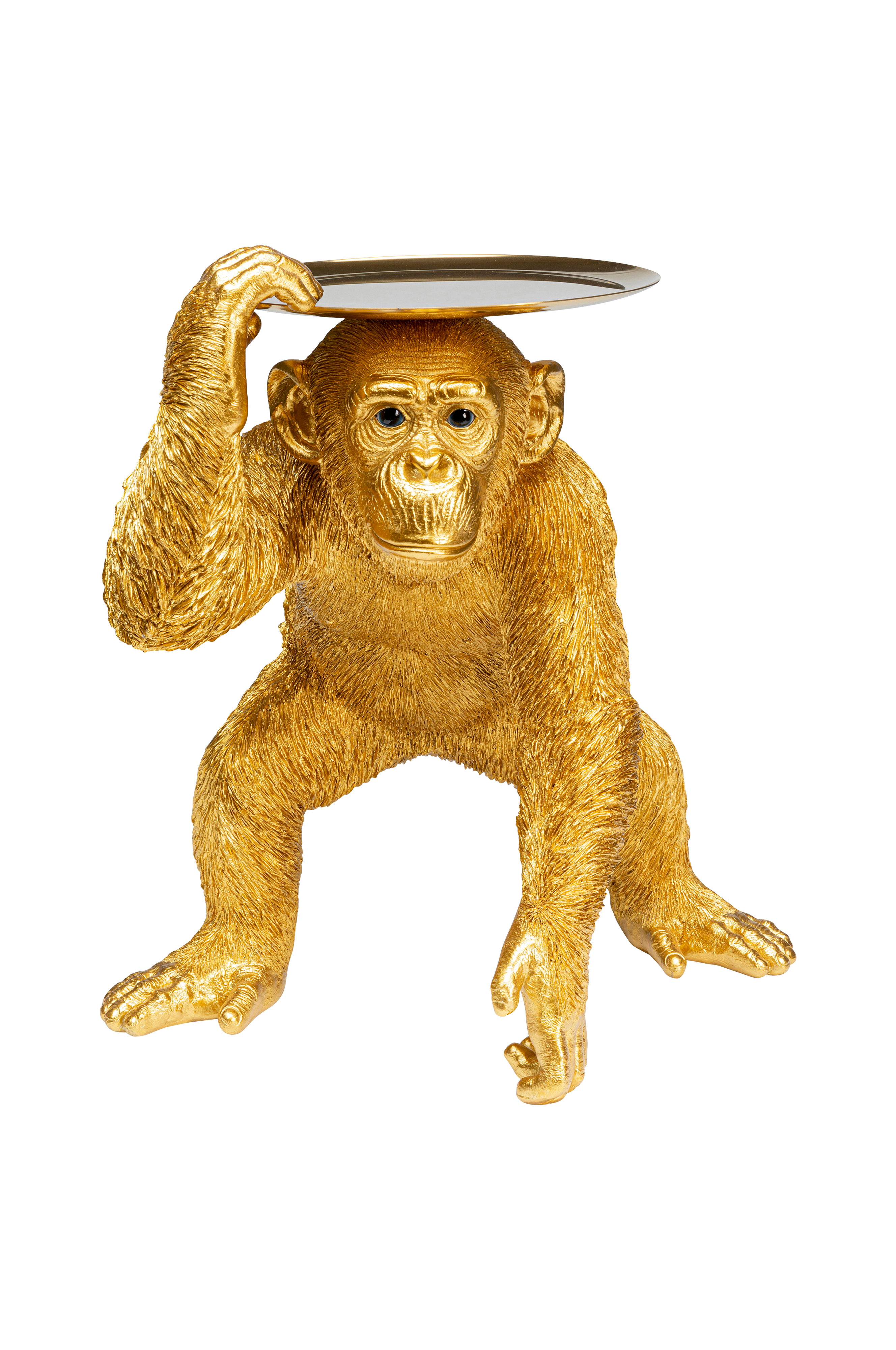 Din nya butler vet hur man imponerar på gästerna. Den detaljrika, handgjorda figuren i form av en schimpans är riktigt unik - avvikelser från bilden kan förekomma. Den kan stå i hallen och hålla nycklar och andra saker inom räckhåll på brickan. Den passar även i vardagsrummet och det är särskilt praktiskt att brickan med diameter 28 cm är avtagbar. Tillverkad av polyresin och stål.