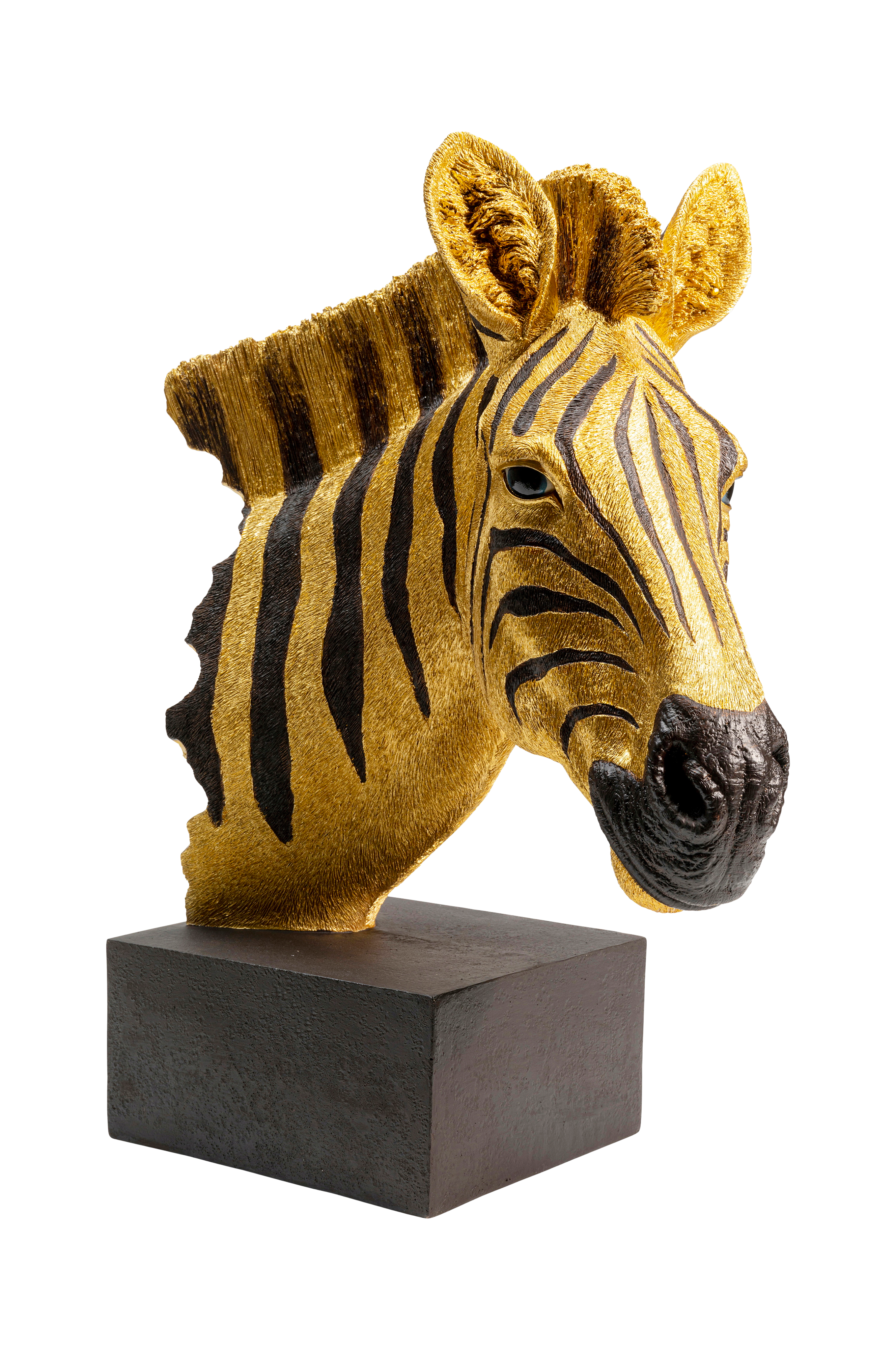 Djurdesign i en ny dimension. Från ränderna till munnen och manen, denna zebra är så detaljerad och levande att det ser som om den alltid tittar på dig. Ett strålande vackert dekorationsföremål som sticker ut i enkla och exceptionella inredningsstilar. Av polyresin.
