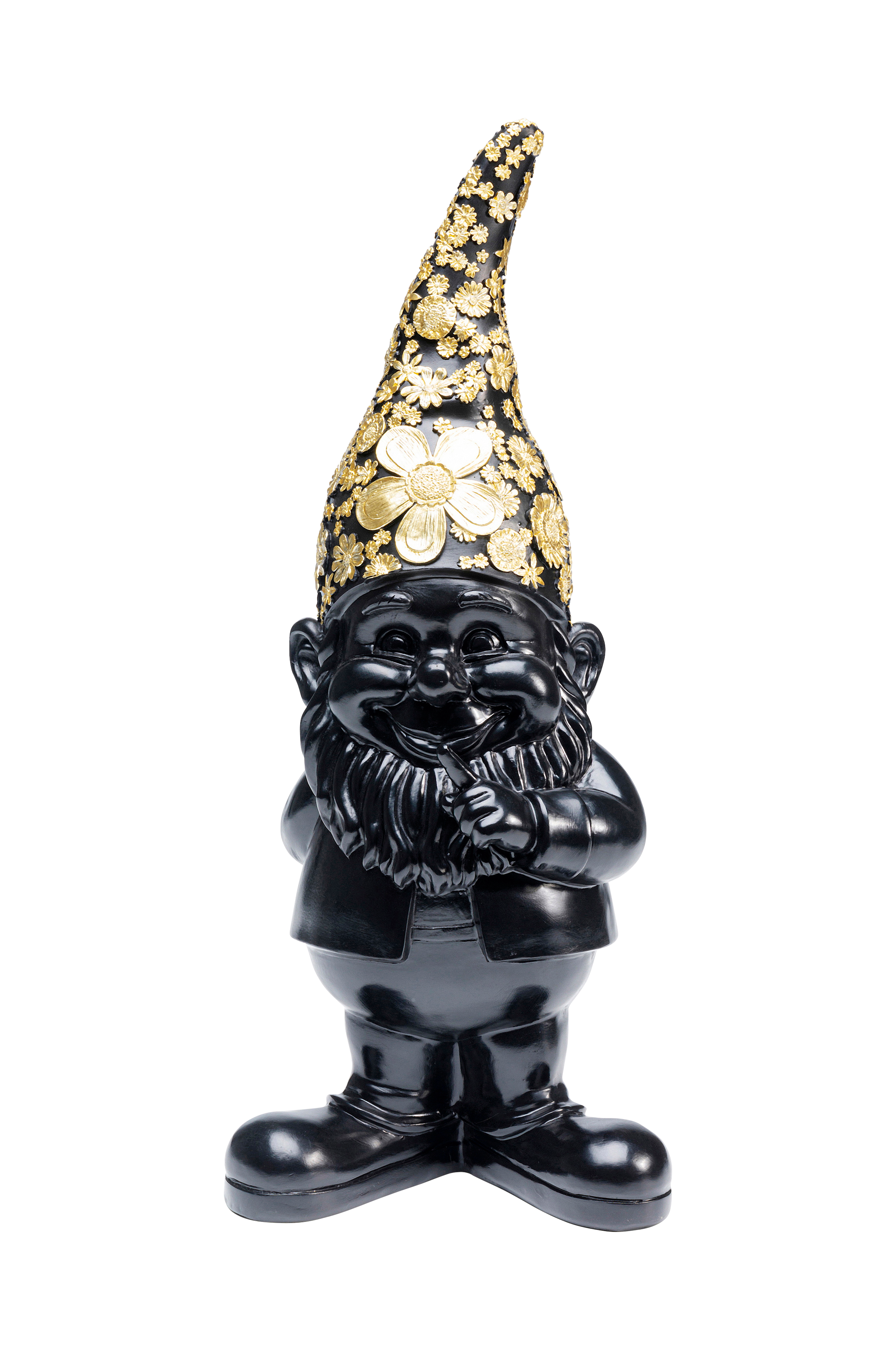 Denna vänliga trädgårdstomte har en fallenhet för det uppseendeväckande, vilket framgår av hans mössa med guldfärgade detaljer som sticker ut mot den svarta kroppen. Med en höjd på nästan 46 centimeter ser tomten inte vilsen ut ens bredvid soffan. Glöm inte att tomtar älskar sällskap - därför hittar du snygga trädgårdstomtar i många varianter och storlekar hos Kare. Tillverkad av polyresin.