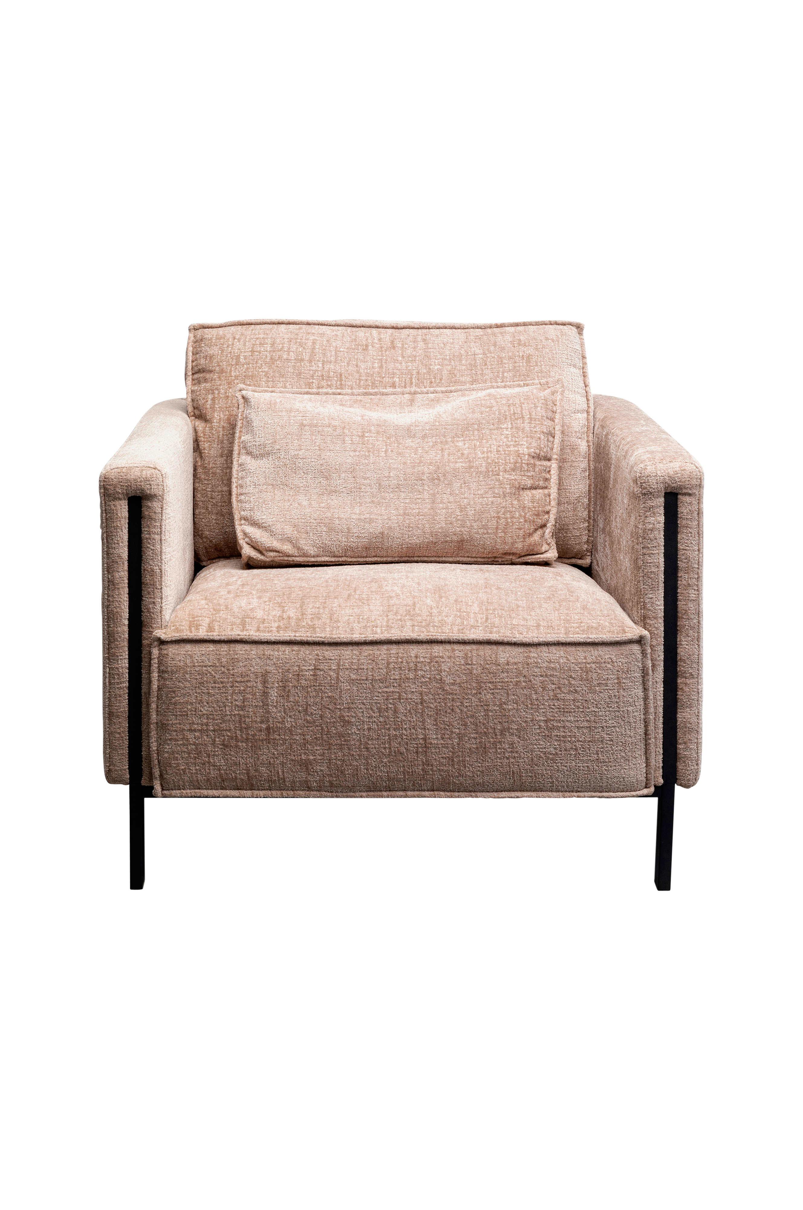 Denna fåtölj i modern beige kombinerar lyx och komfort - perfekt för dem som älskar stil och mysighet. Den sammetslena chenilleklädseln inbjuder till avkoppling, medan de svarta stålfötterna ger en attraktiv kontrast. En riktig höjdpunkt för vardagsrummet, entrén eller omklädningsrummet! Topptips: i kombination med en fluffig filt och ett sidobord blir det den perfekta platsen för läsäventyr och lite riktig mysstund!