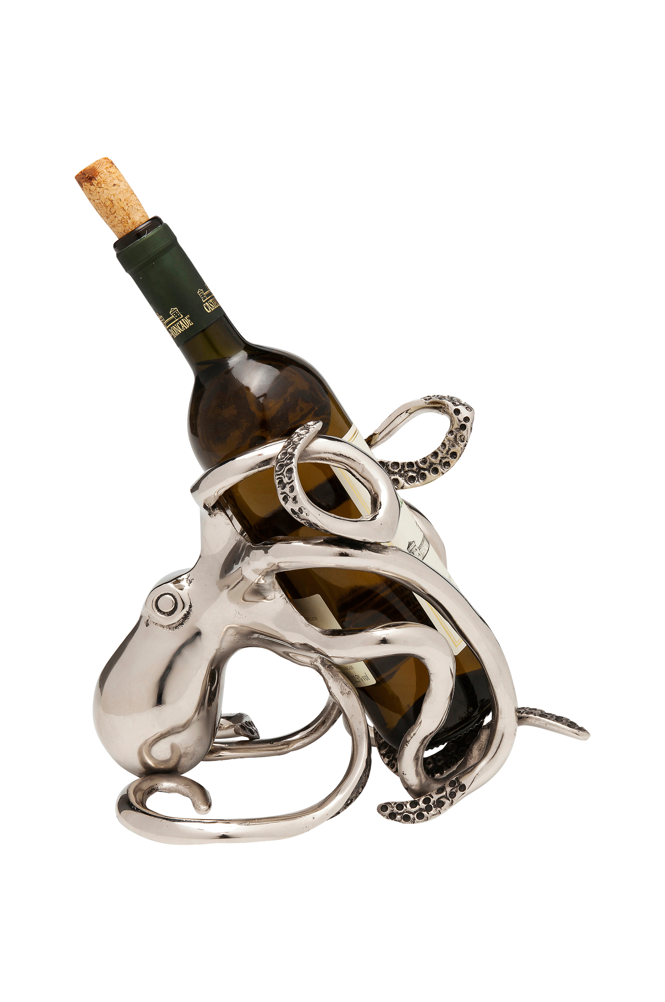 octopus flaskhållare i metall är inte bara ett praktiskt tillbehör, utan också ett riktigt blickfång. Den robusta designen och de starka tentaklerna på octopus håller dina flaskor säkra och stabila. Flaskhållaren är inte bara funktionell, utan också dekorativ och ger en lekfull touch till alla rum. Perfekt för köket, baren eller vardagsrummet. Den unika designen gör också denna flaskhållare för vin och andra fina drycker till en speciell gåva.