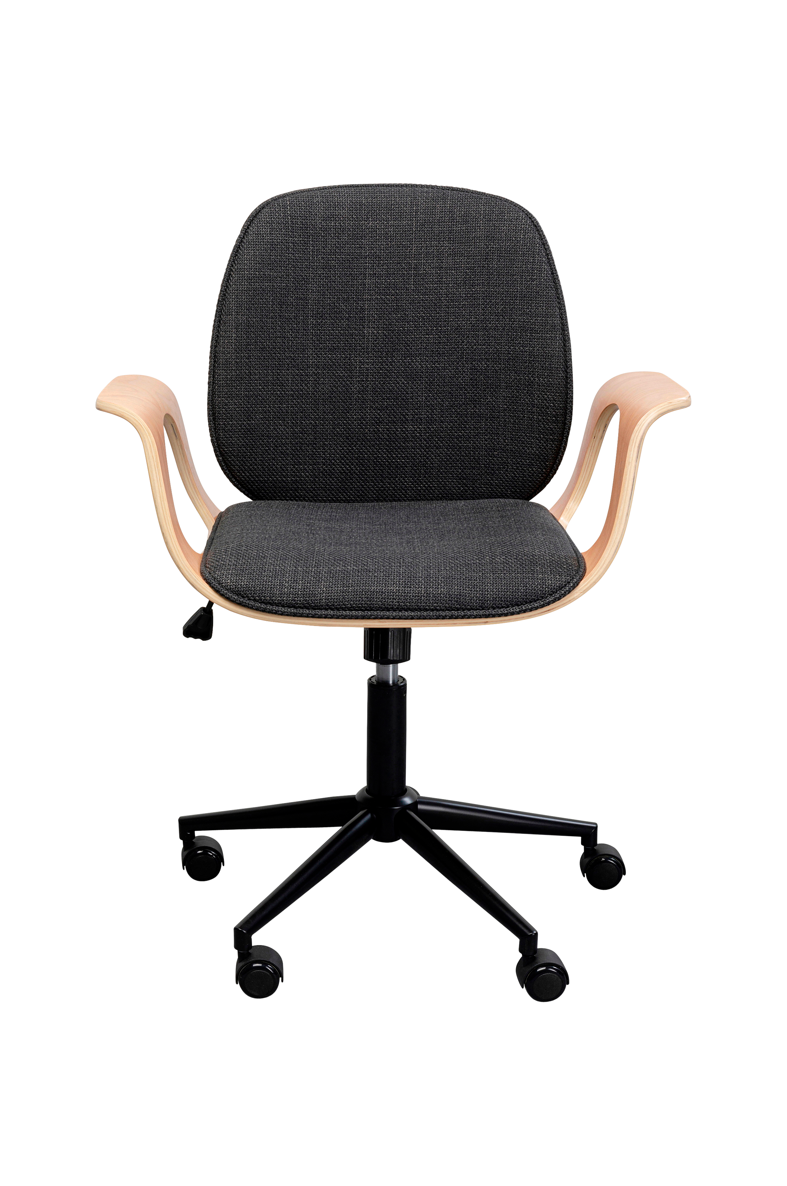 Denna kontorsstol kombinerar skandinavisk klarhet med urban elegans - ett riktigt statement i arbetsmiljön. Sittskalet av ångböjt massivt poppelträ ger stolen en naturlig värme, medan det melerade tygöverdraget i grått ger en modern touch. Den mattsvarta metallramen garanterar stabilitet och tidlös estetik. Den här stolen är perfekt för hemmakontor eller kreativa arbetsplatser och smälter sömlöst in i olika inredningsstilar. I kombination med ett minimalistiskt skrivbord och en golvlampa i industriell stil skapar den en harmonisk helhet som är både funktionell och elegant. En kontorsstol som inte bara erbjuder komfort utan också berikar rummets design.