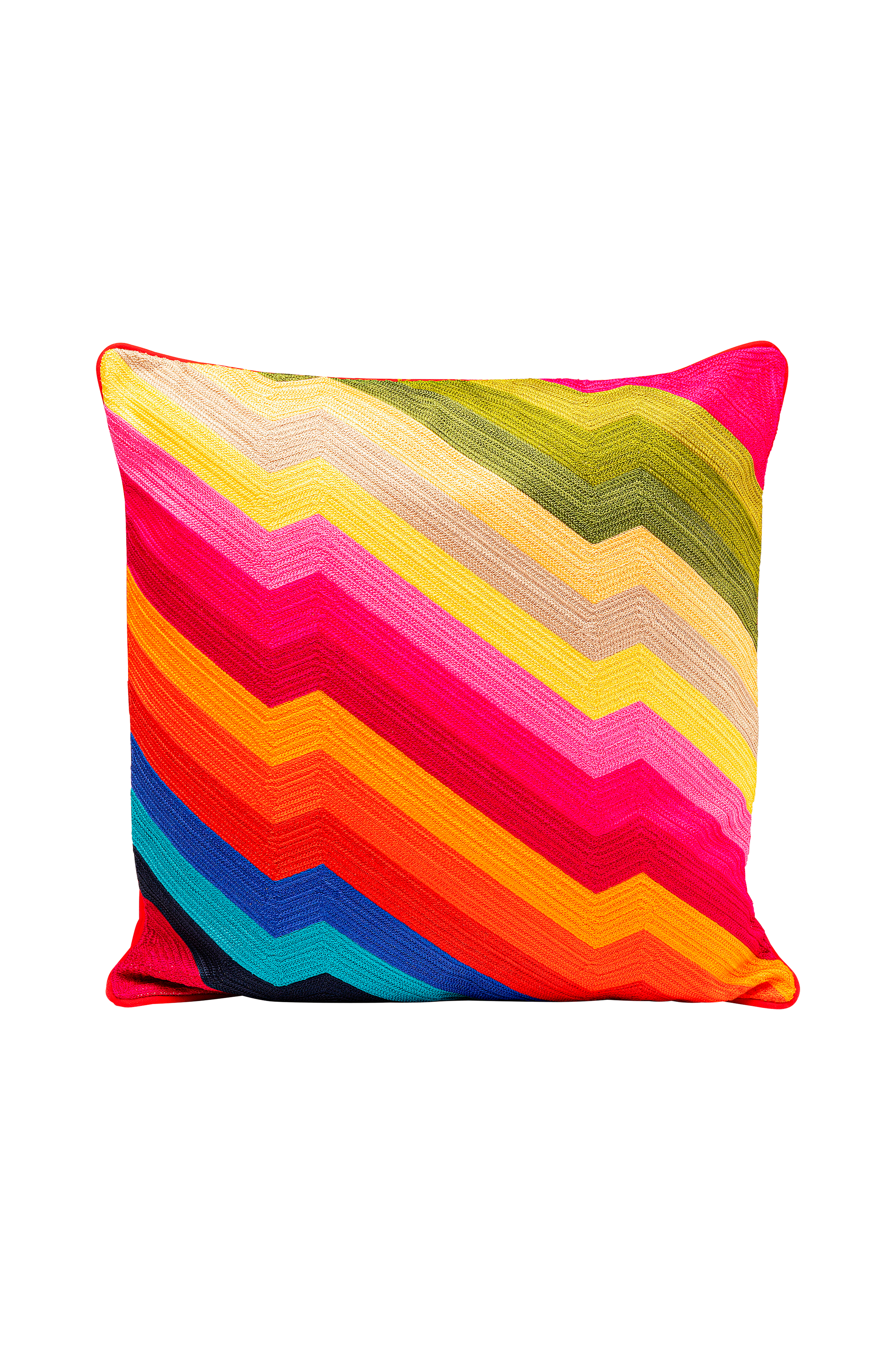 Färgstark stil möter mysig komfort! Denna konstfullt mönstrade prydnadskudde gör ett riktigt designuttalande i hemmet med sina ljusa nyanser och abstrakta former. Blandningen av ull och bomull ger en behaglig känsla och inbjuder till avkoppling. Oavsett om den används som blickfång i soffan, som accent i fåtöljen eller som färgklick i sängen - den harmonierar perfekt med moderna sammetssoffor, skandinaviska trämöbler eller boho-interiörer och skapar livfulla kontraster med enfärgade färger.