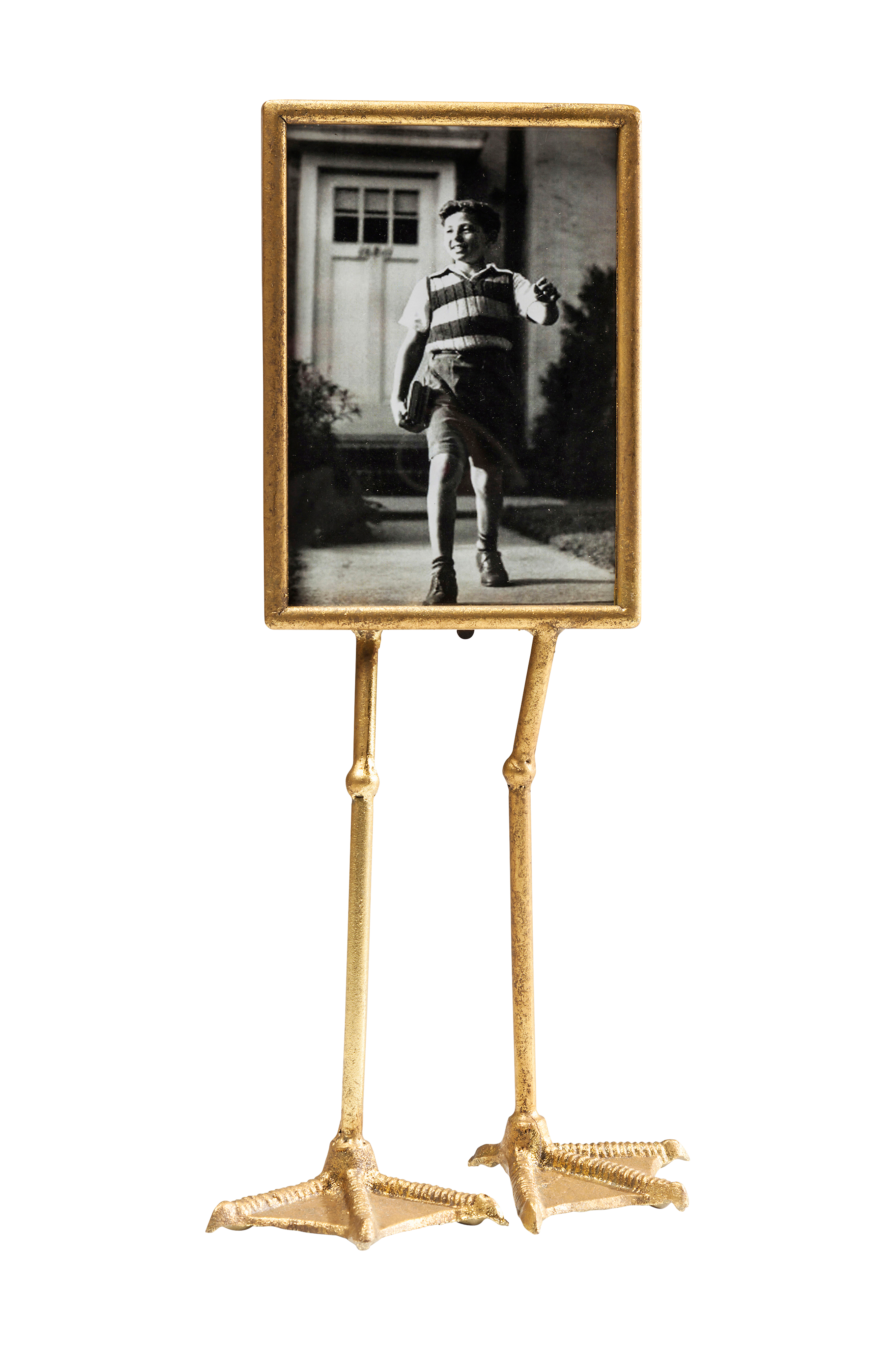 En galen fotoram att bli förälskad i. Fotot som är 13x18 cm stort bärs av ett par änder feet. Men det är inte allt: både feet och ramen är färgade i guld. Lite galen och lite lekfull, den här fotoramen kommer garanterat att få ut det bästa av varje foto. finns i ytterligare en storlek.