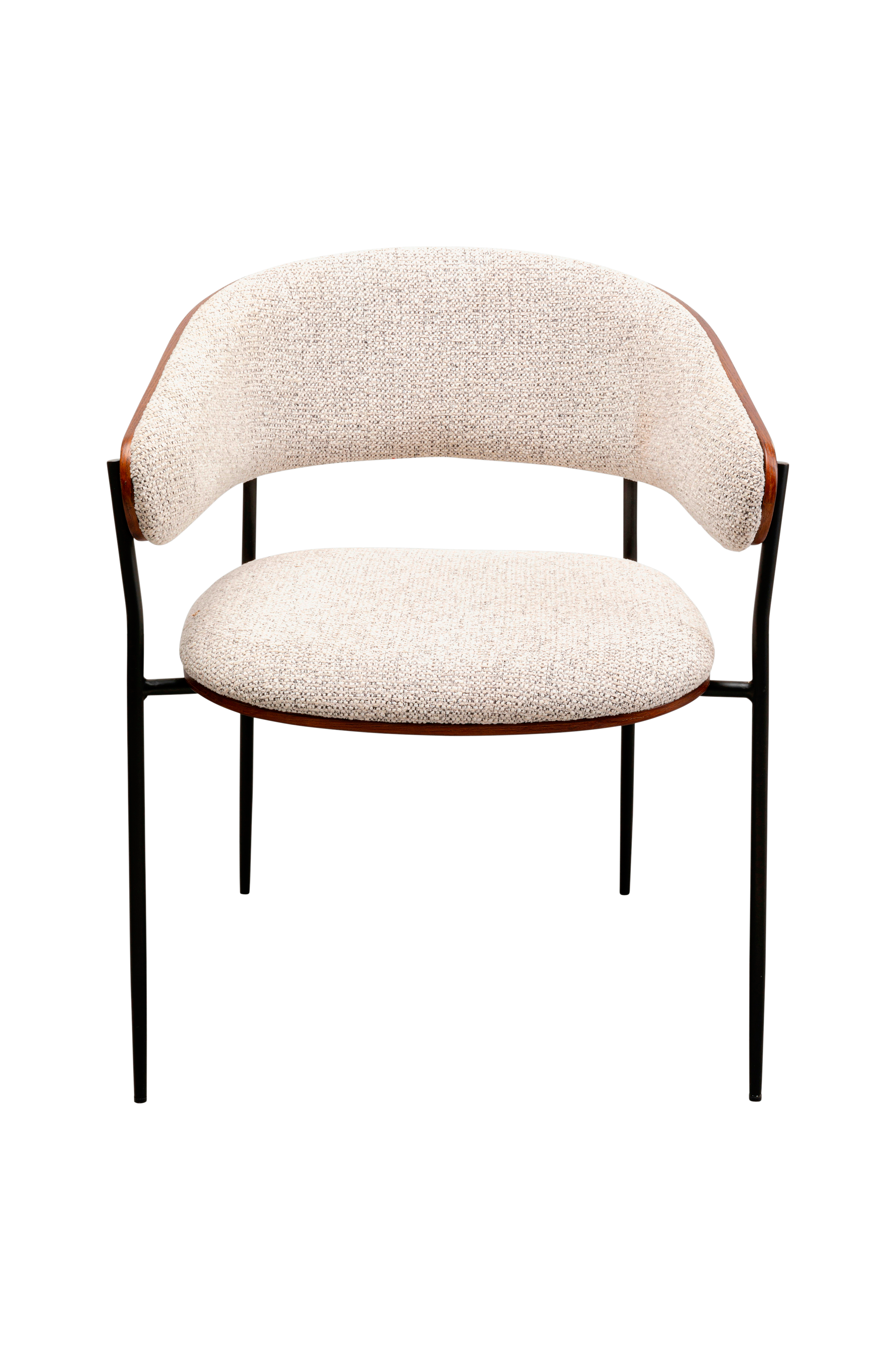 Elegans och tidlös modernitet - det är de egenskaper som kännetecknar designen av denna stoppade stol av högsta kvalitet. Det tweedliknande överdraget möter ryggstödets varma, bruna valnötsträ och tillsammans skapar de en sofistikerad finish. Det svängda ryggstödet och skumstoppningen ger en behaglig sittkomfort. Stolens ram och ben är tillverkade av stål och pulverlackerade i svart.