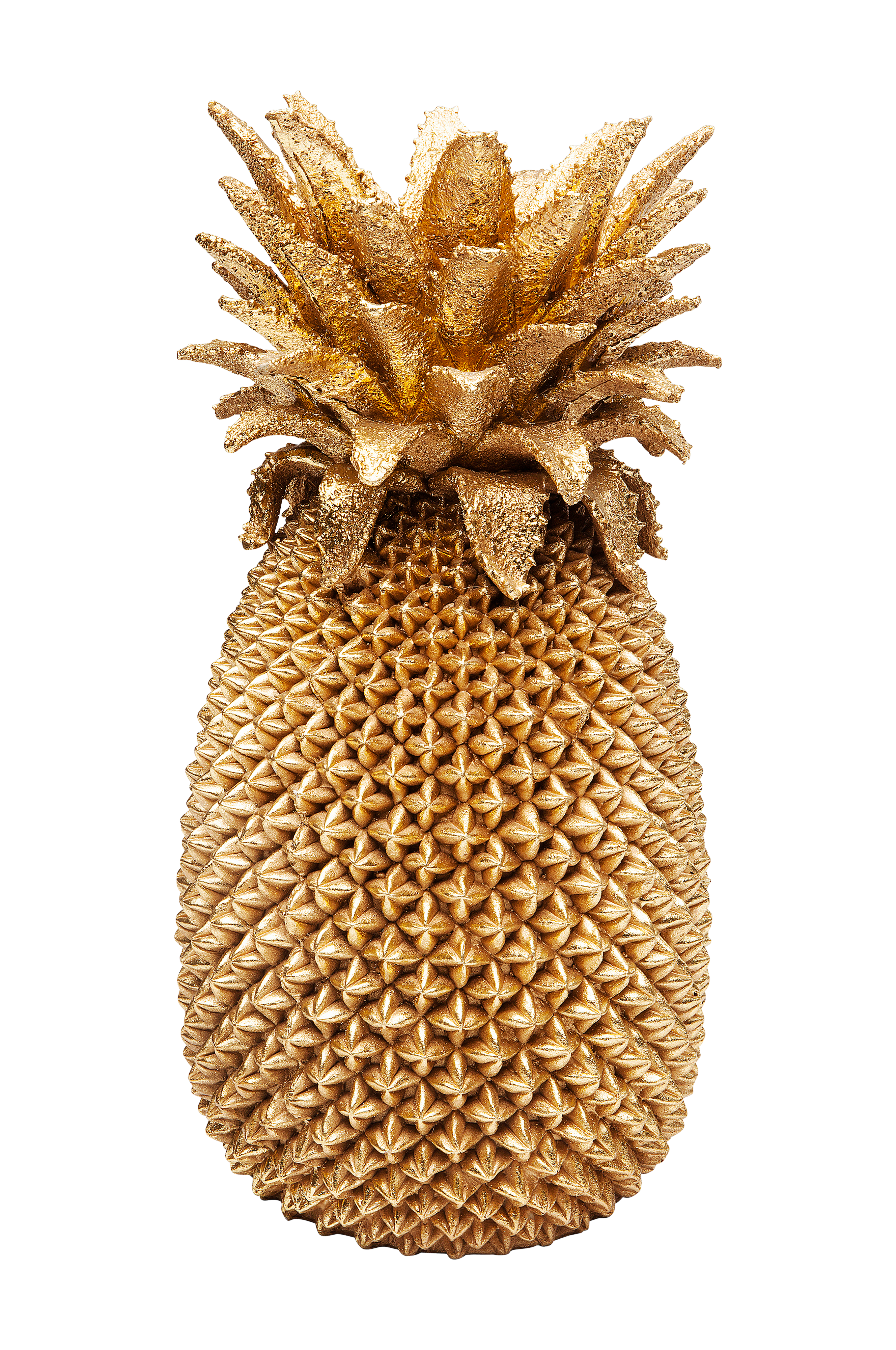 En handtillverkad vas i form av en ananas, full av vitamin G - G som i guld och glamour. Även utan blommor, som dekorationsföremål, ger den ett storslaget intryck. Tack vare den imponerande storleken och robusta syntethartsen, är den också perfekt som golv vas.