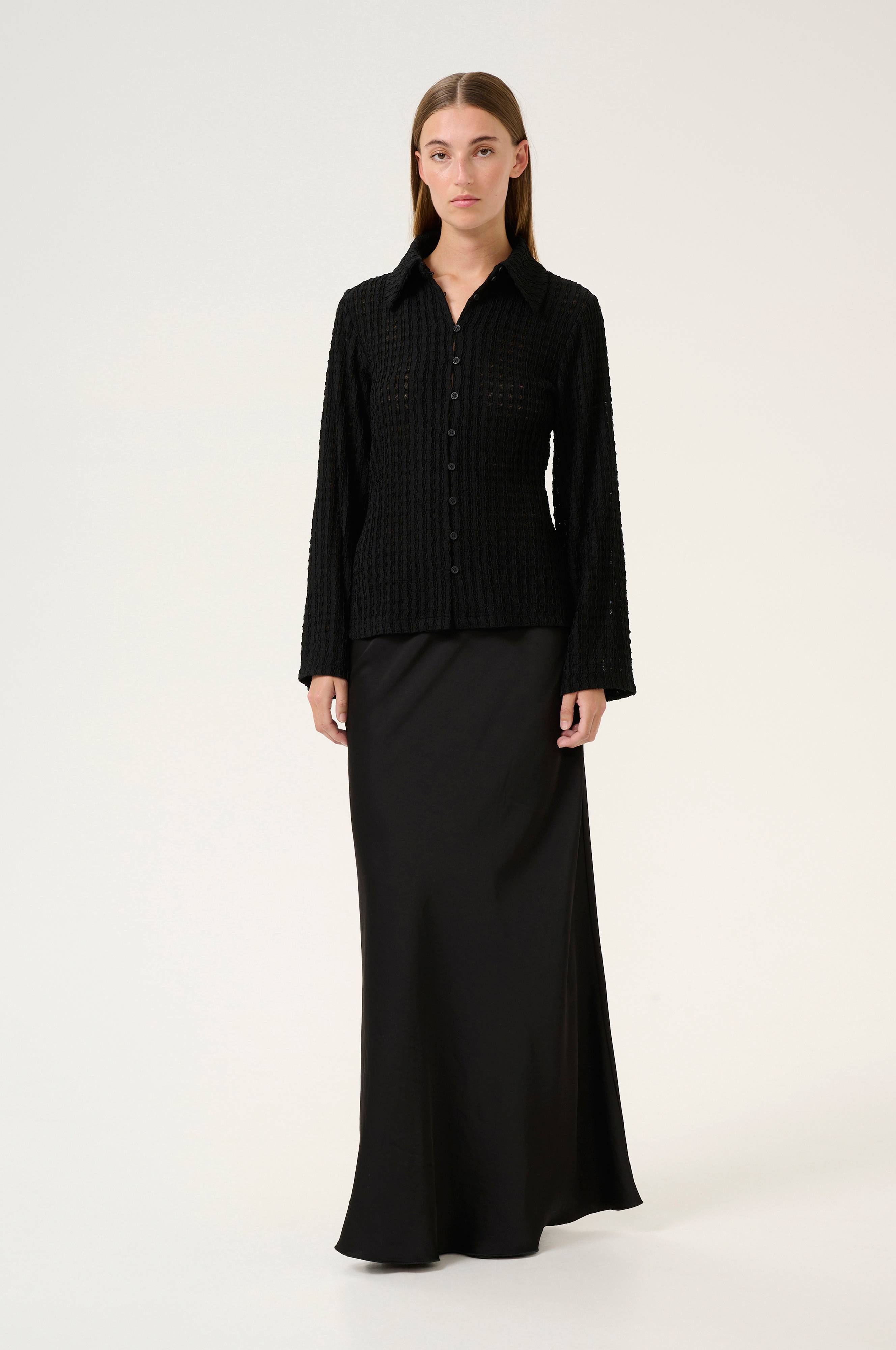 • Strukturvävd blus med transparenta ränder• Krage• Knappstängning• Långa ärmar