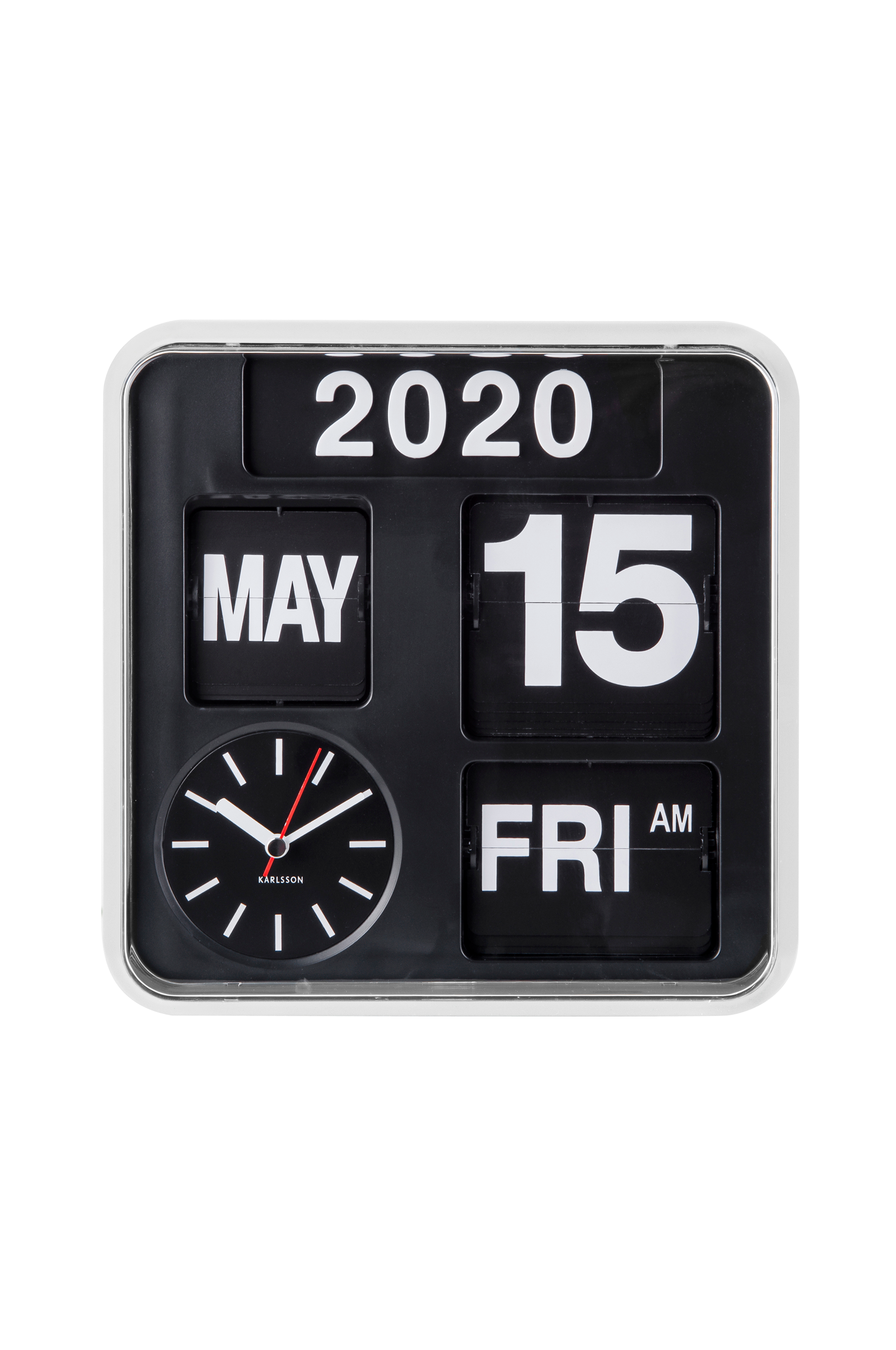Kalenderklocka Mini Flip med hölje av plast. Drivs med 5x AA batteri, medföljer ej.