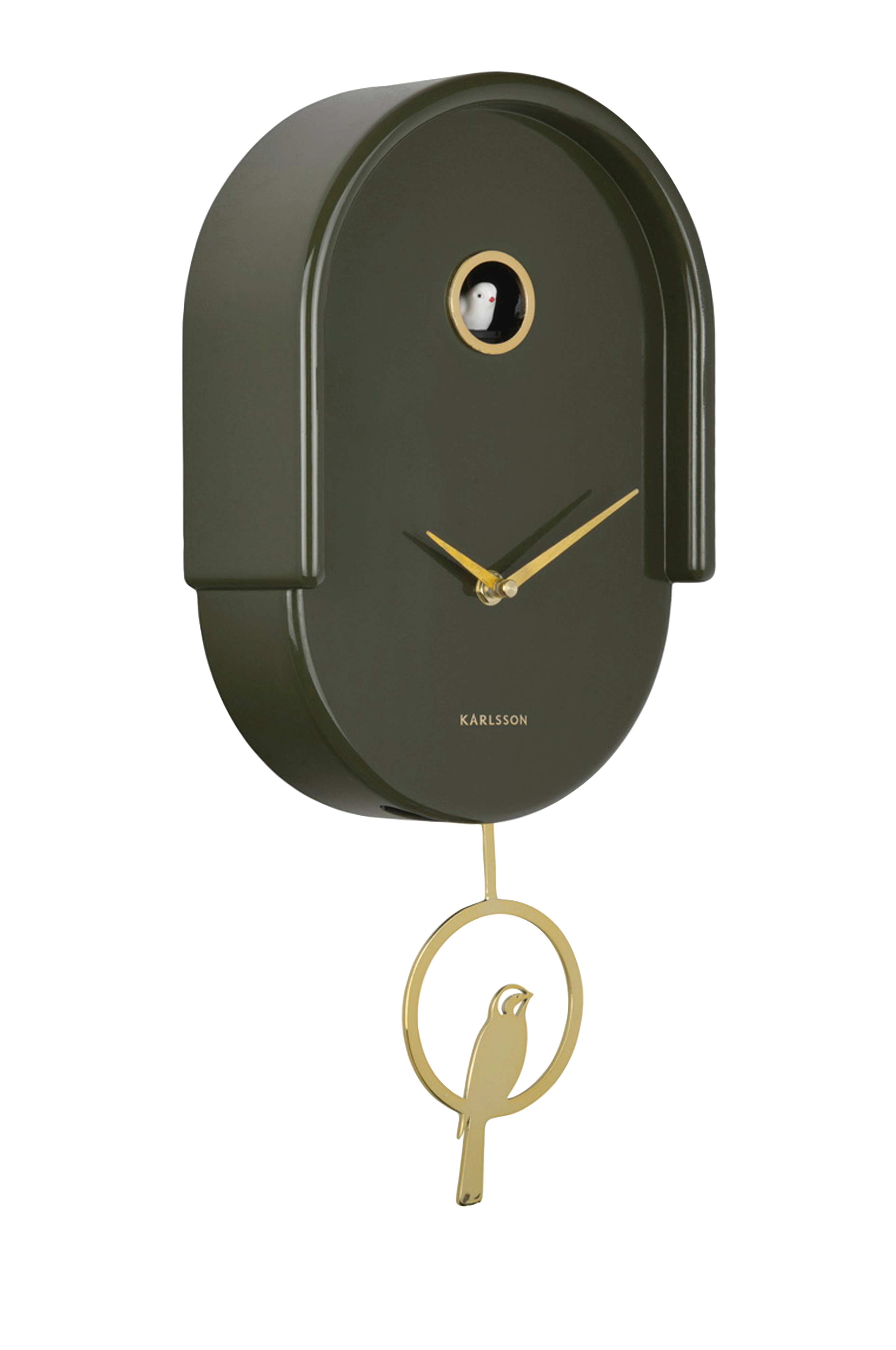 Design med karaktär. Karlssons väggklocka " tweet ", designad av Callum Macsorley, utstrålar lyx med sin glansiga yta och raffinerade detaljer. Klockan har en pendel och en elegant fågel som kommer till liv vid bestämda tider. De runda formerna och guldtonade elementen ger den ett lekfullt men samtidigt elegant utseende. Ett slående objekt som säkert kommer att tilltala designälskare.