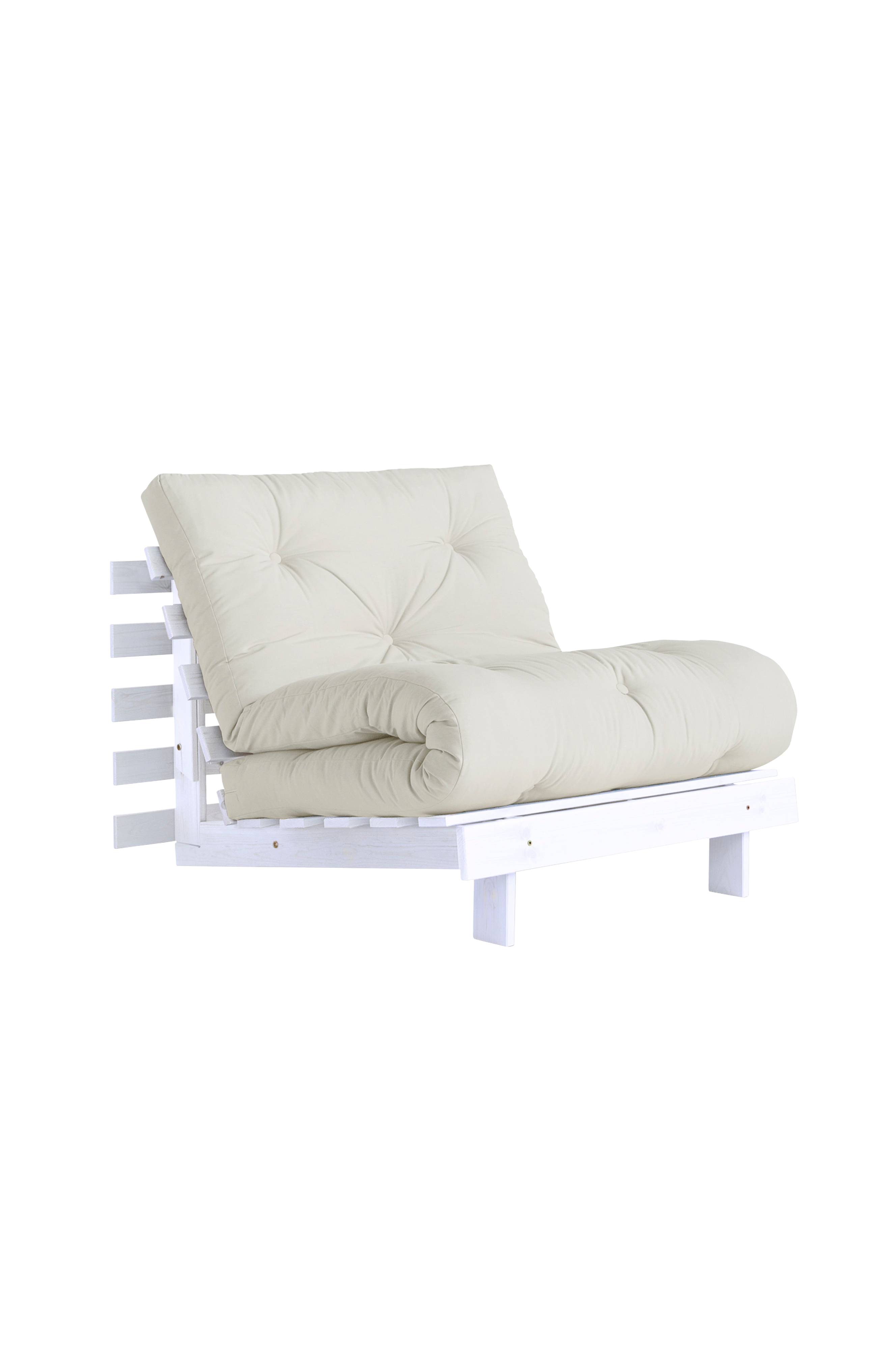En tidlös möbel Roots 90 är essensen i Karup Designs DNA: Du får inte bara en soffa utan också en säng och en bekväm loungestol. Genom att fälla in frambenen och justera ryggen får du en bekväm loungestol. Genom att sänka ryggen helt får du en fin säng där du kan ladda upp rotad till marken. Fäll upp ryggen, vik in madrassen, och nu har du en loungestol i vanlig höjd. Roots 90 förvandlas snabbt och enkelt - precis som magi. Hänger du med?