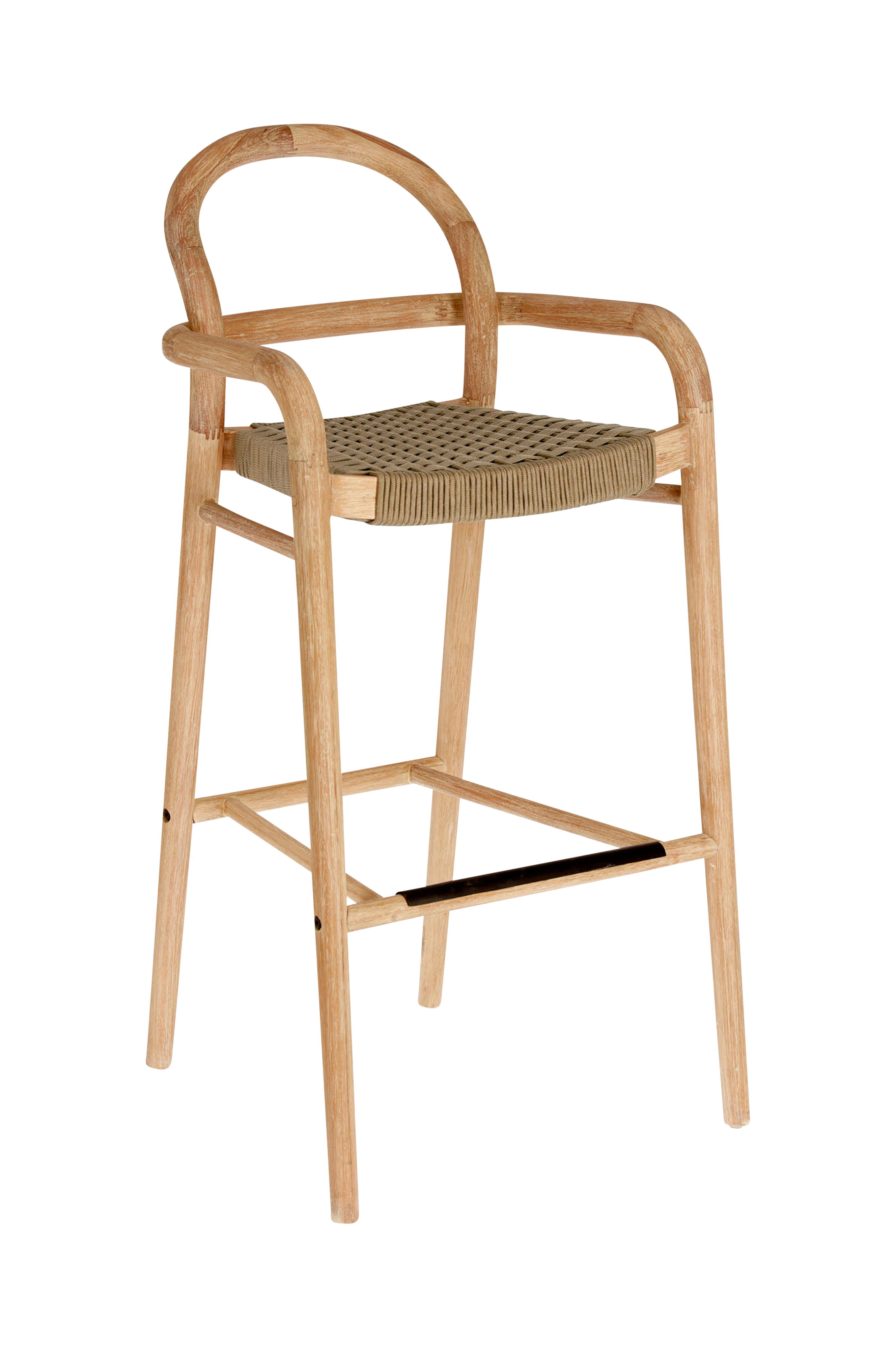 Carlos Guijarro har designat denna stol som är 110 cm hög, för Kave Home. Den är handgjord av eukalyptusträ i naturfärg. Varje stol har sitt egna mönster och specifika nyans, eftersom den är tillverkad av massivt trä, vilket gör varje exemplar exklusivt och unikt. Flera manuella tekniker tillämpats, som till exempel att forma stommen genom att böja träet med hjälp av ånga. Stolen är också handvävd och kombinerar runda och platta rep, vilket gör den jämnare och mer stabil. Bredd: 54 cm. Djup: 56 cm. Höjd: 110 cm.