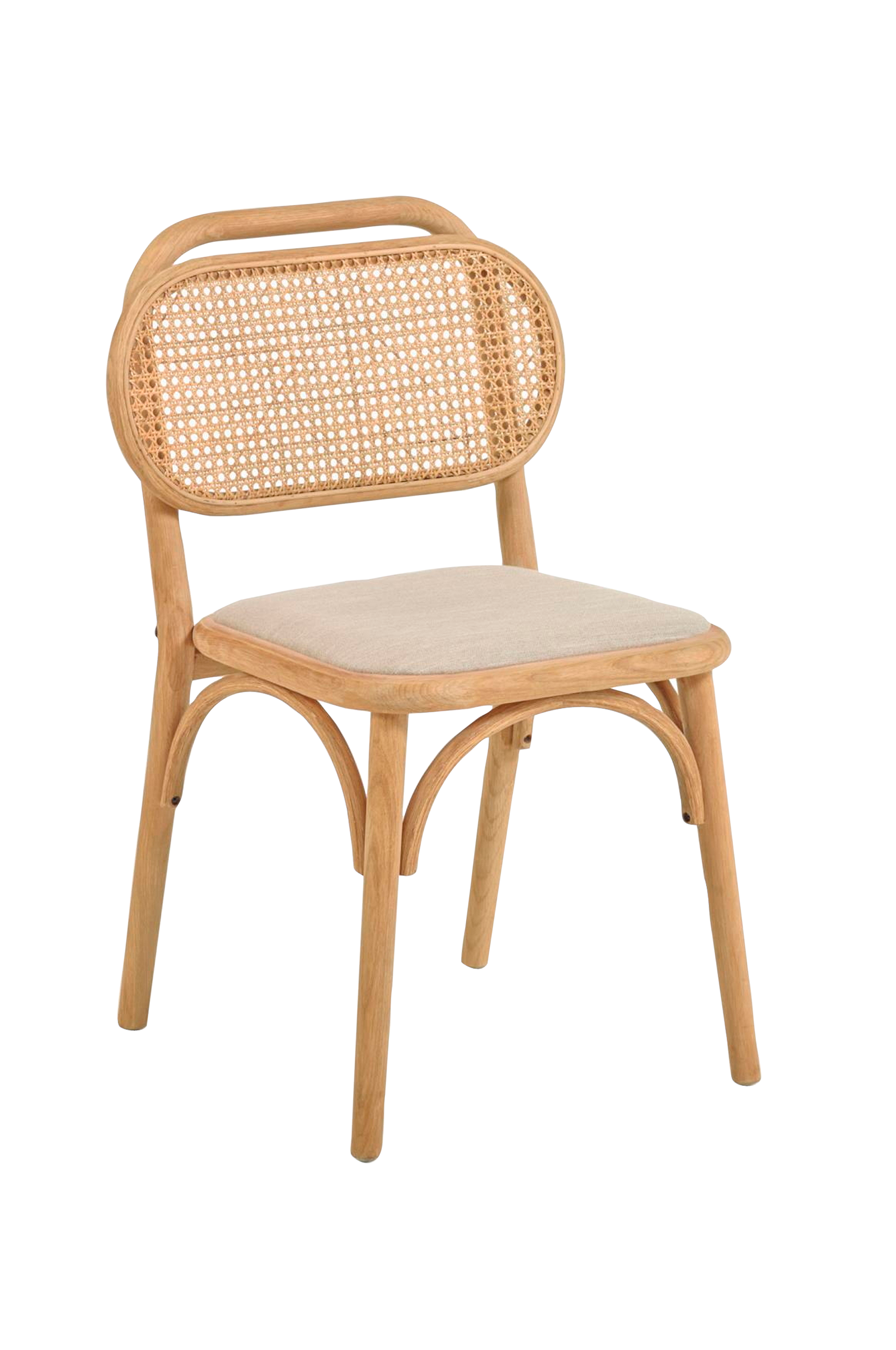 Doriane är en handgjord stol tillverkad av hållbart anskaffad massiv alm, handvävd rotting och en sits med vattenavvisande klädsel med linneeffekt. Perfekt för att skapa en cool, modern matsal med en naturlig look tack vare den uppdaterade klassiska designen. Produktens bredd: 54 cm. Produktdjup: 58cm.cm.