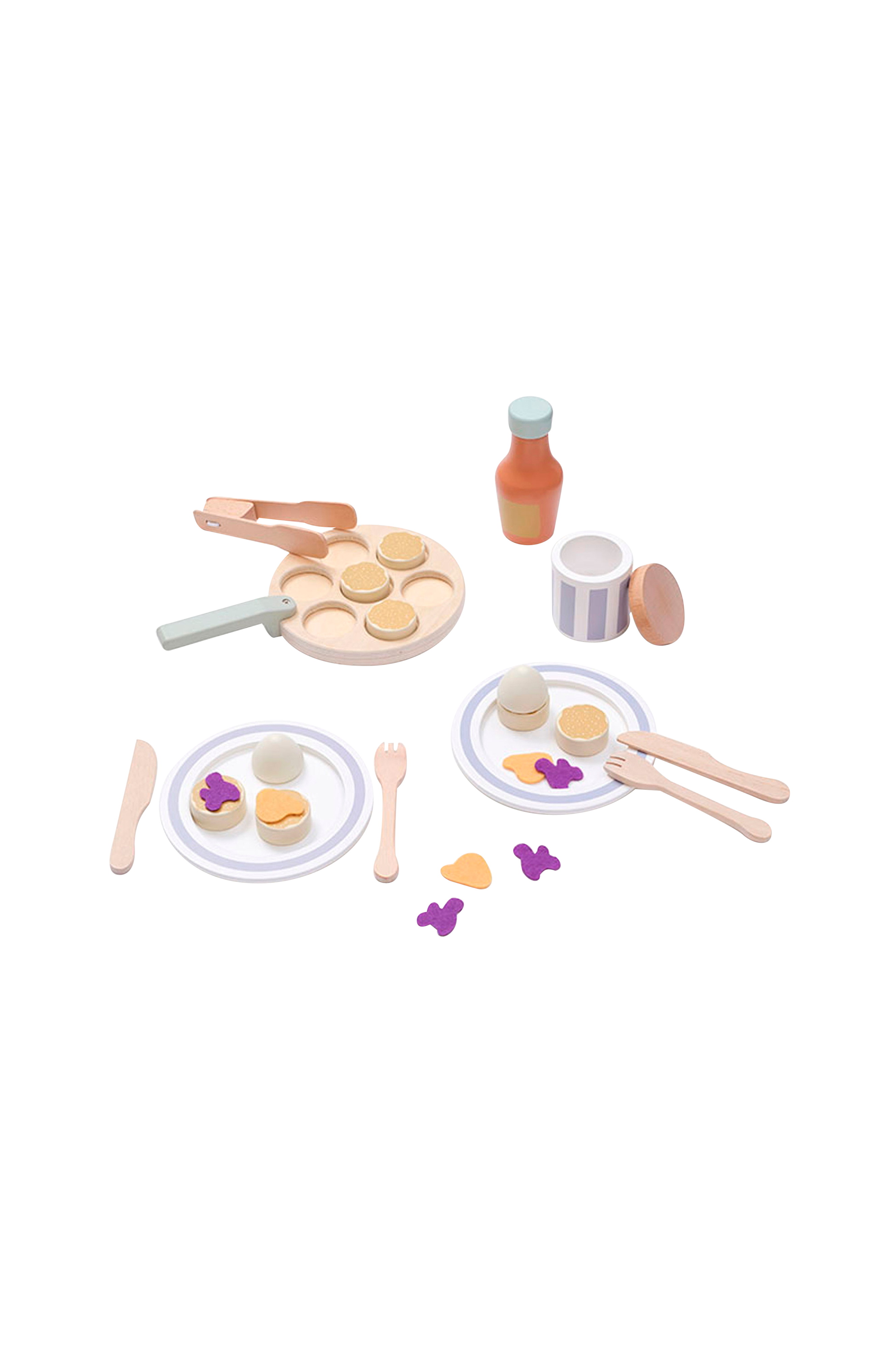 Kickstarta dagen med att laga din egen pannkaksfrukost. Under denna sociala och fantasifulla lek tillagas traditionella små pannkakor. Setet innehåller en pannkakspanna, sex pannkakor, en sirapsflaska, en syltburk med avtagbart lock, två tallrikar, två gafflar, två knivar, 2 "syltdockor", en spatel och två "grädddockor".