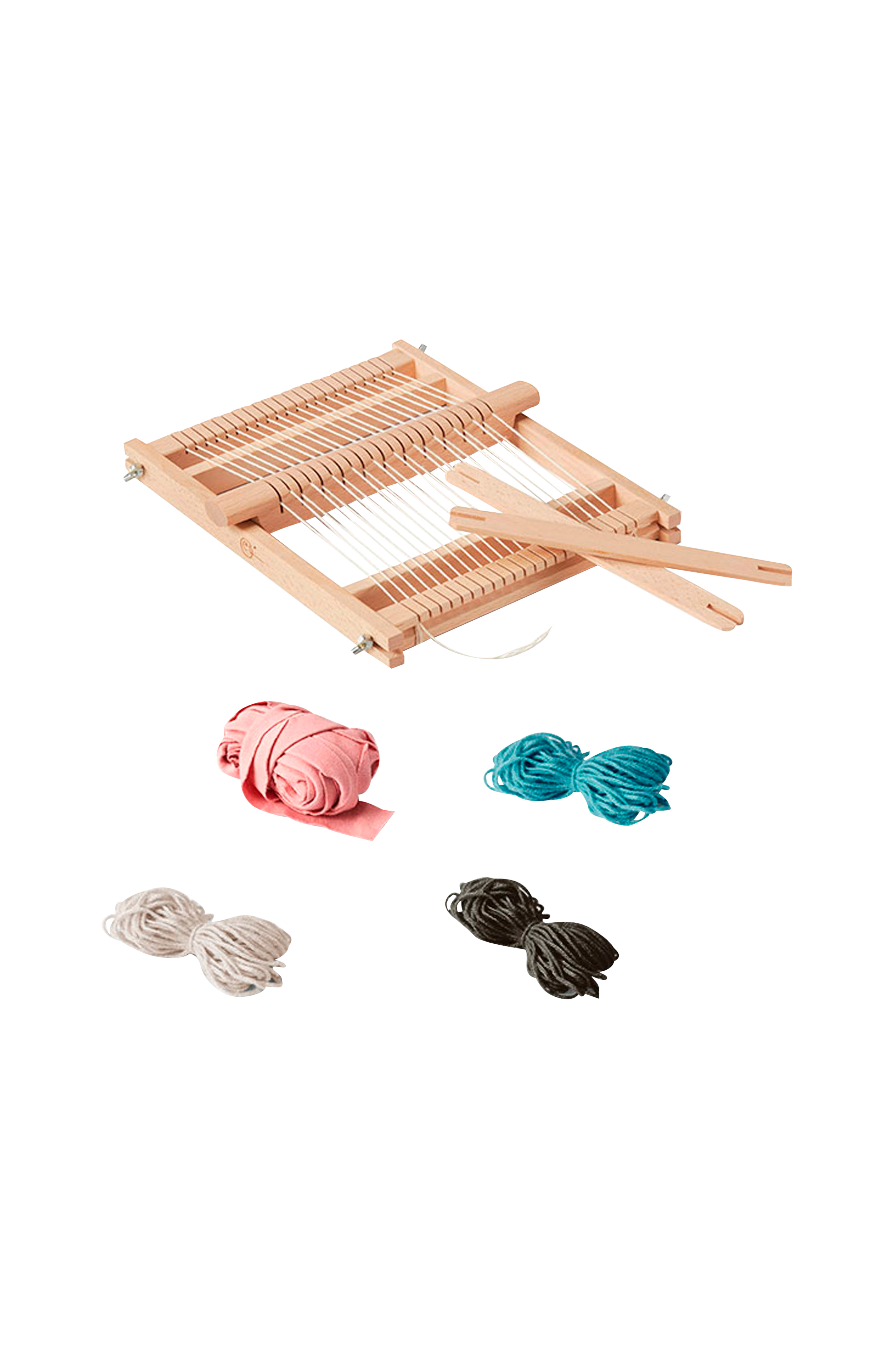 Till vävramen ingår det fyra olika garner i olika strukturer och färger. Produkten är färdigträdd i förpackningen så det är bara att sätta i gång och väva. Låt fantasin flöda och inspireras till timmar av kreativ lek. Väv fina mattor till dockskåpet, en duk till blomkrukan eller färgglada underlägg - perfekt både för yngre och äldre pysslare.