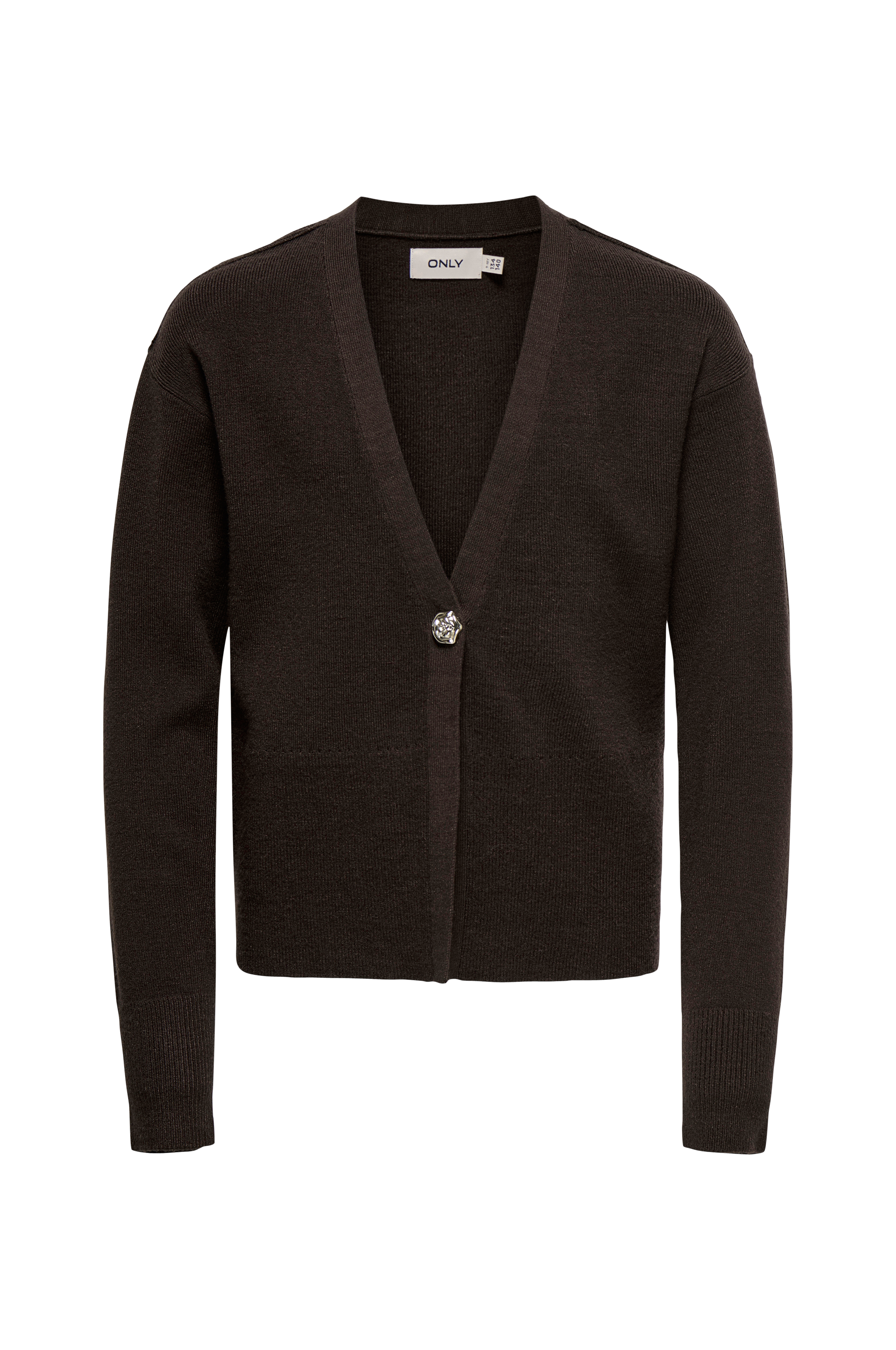 • Mjuk, ribbstickad cardigan• V-ringad hals• Dekorativ knappstängning• Bred ribbstickning i ärmsluten och i nederkanten