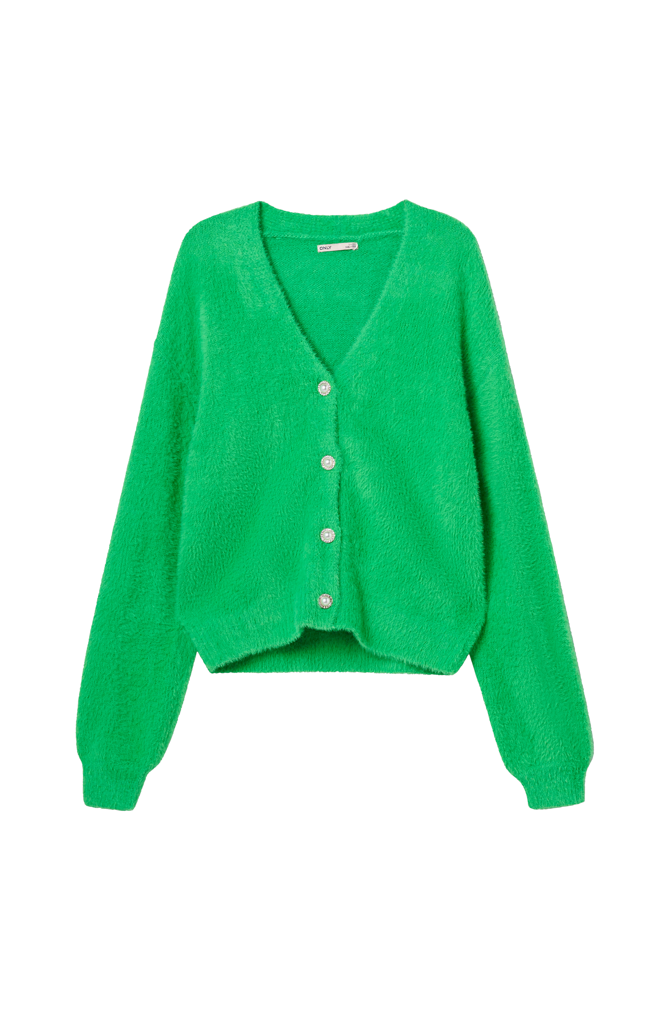 • Finstickad cardigan med mjuk, hårig yta