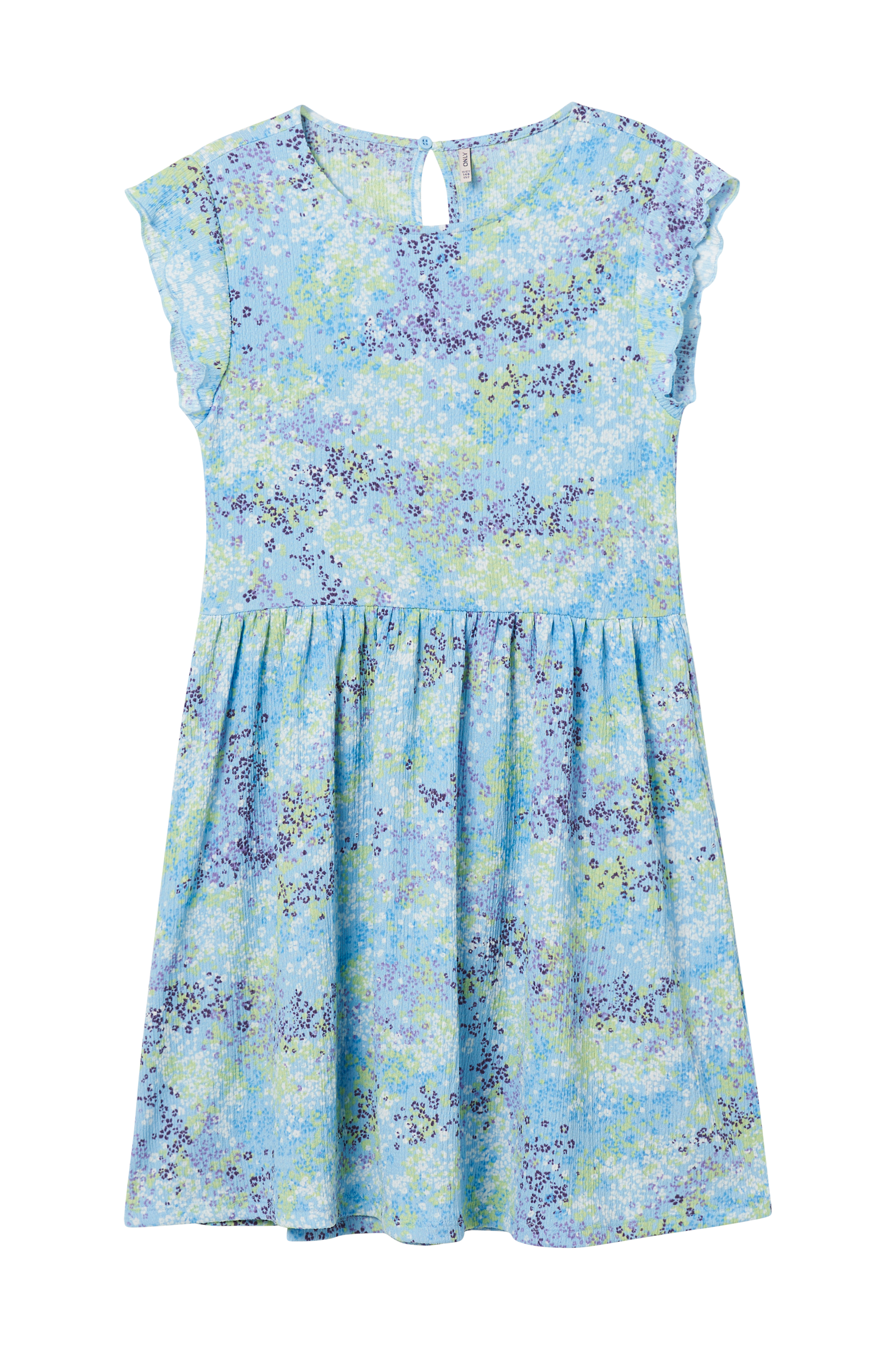 • Korta volangärmar• Rund hals med sprund och knapp i nacken• Elastisk midja