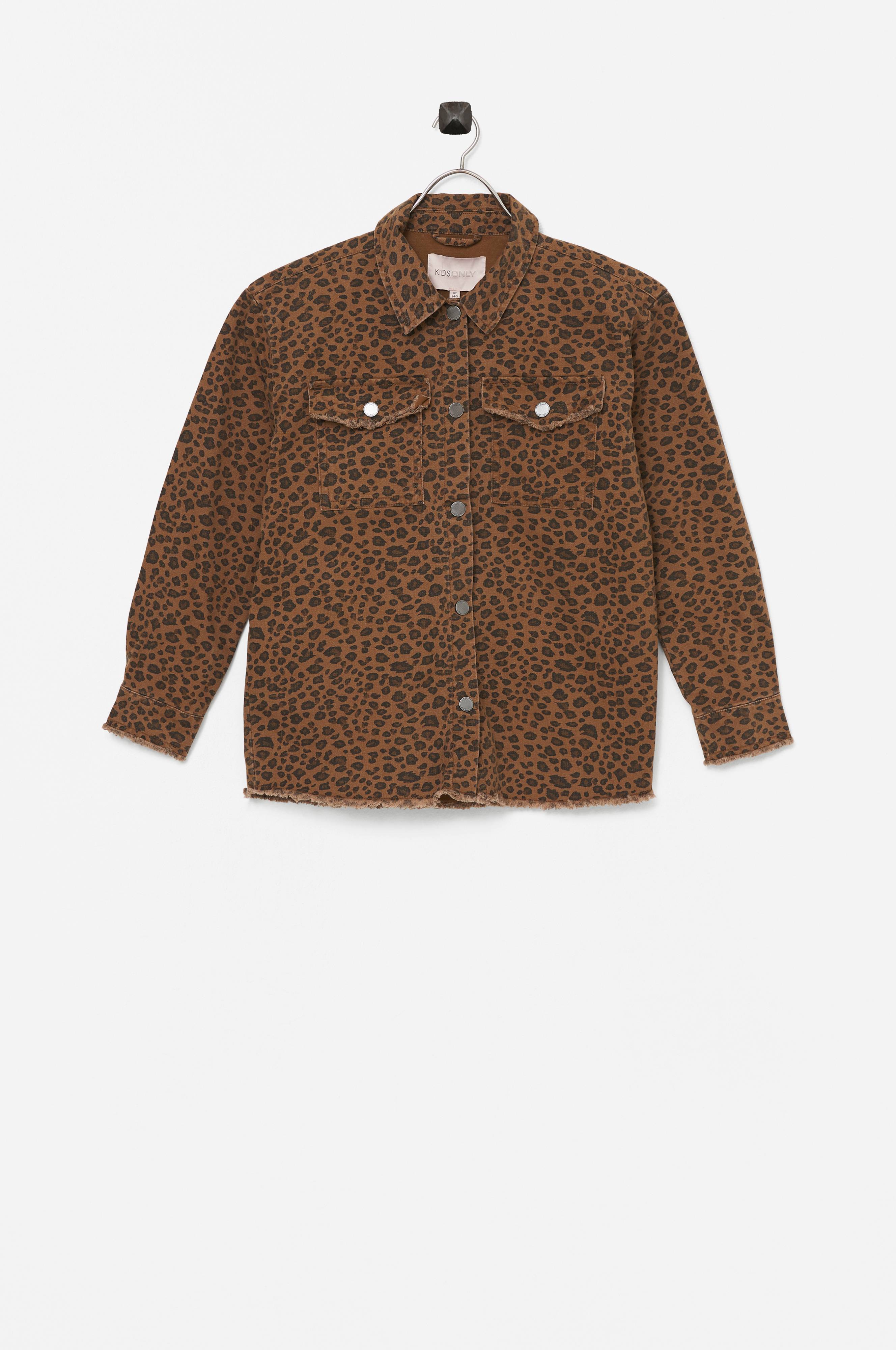 Skjortjacka i kraftig, vävd kvalitet med leomönster. Tryckknappar fram, två bröstfickor och tryckknapp i ärmsluten. Franskant nedtill, i ärmsluten, på fickorna och längs oksömmen bak.