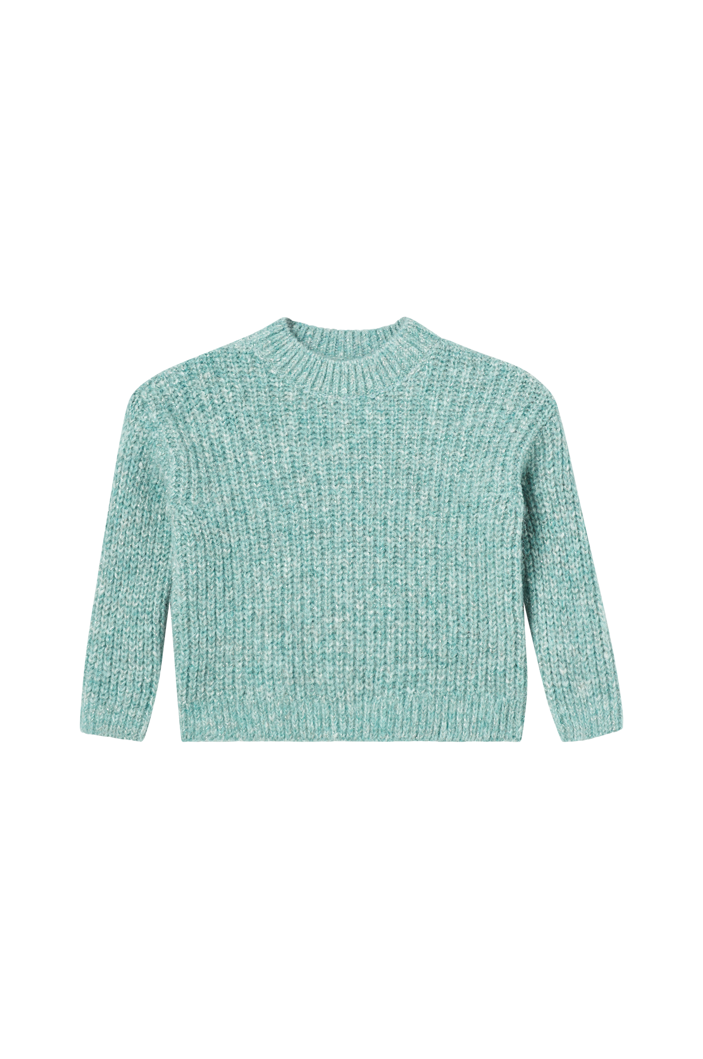• Stickad tröja med glittertråd• Rund halsringning