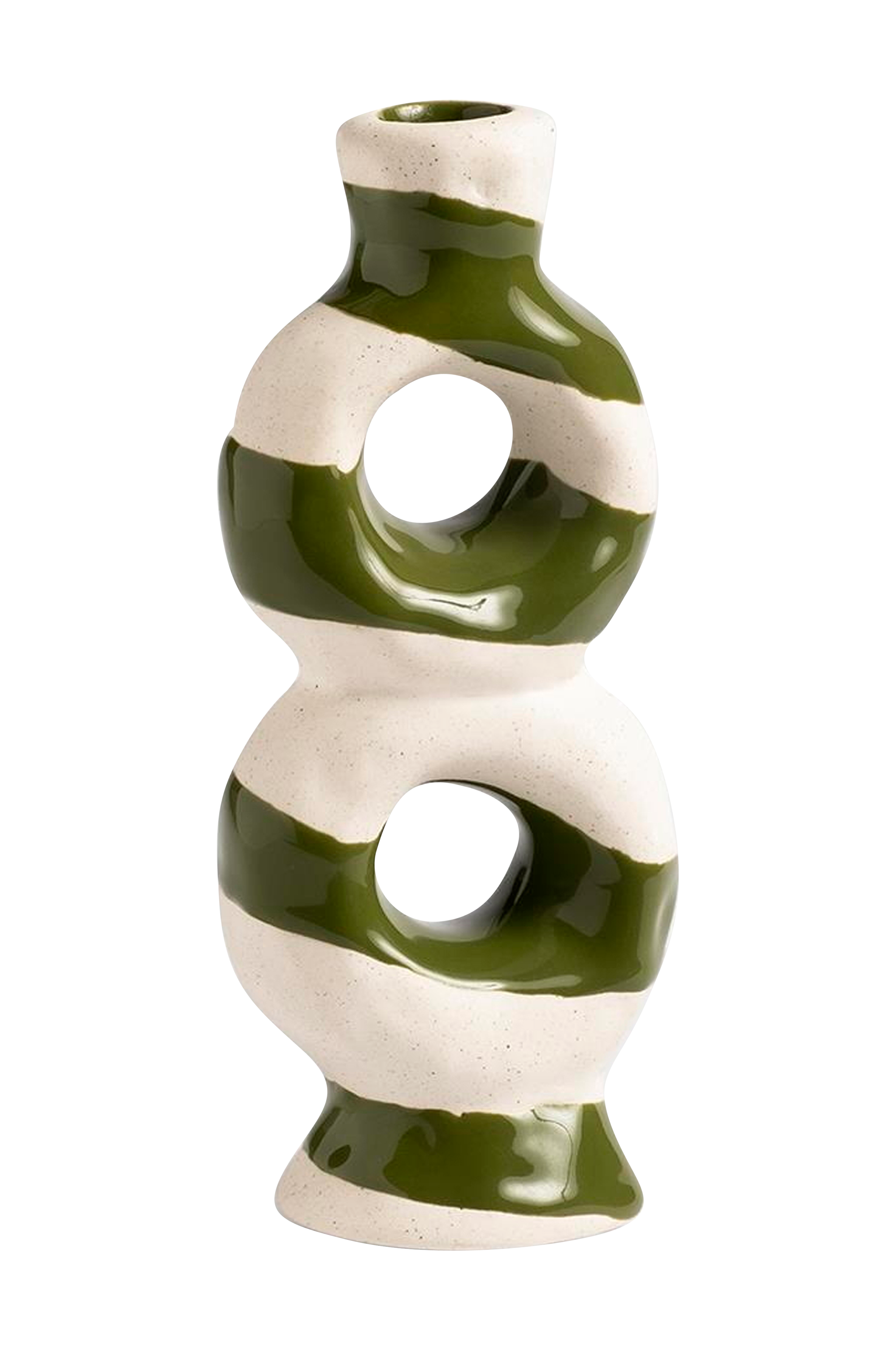 Ljusstaken Loop har de mjuka formerna och neutrala färgerna som är lätta att kombinera med alla inredningar. Material: Stengods. Rengör med en fuktig trasa.