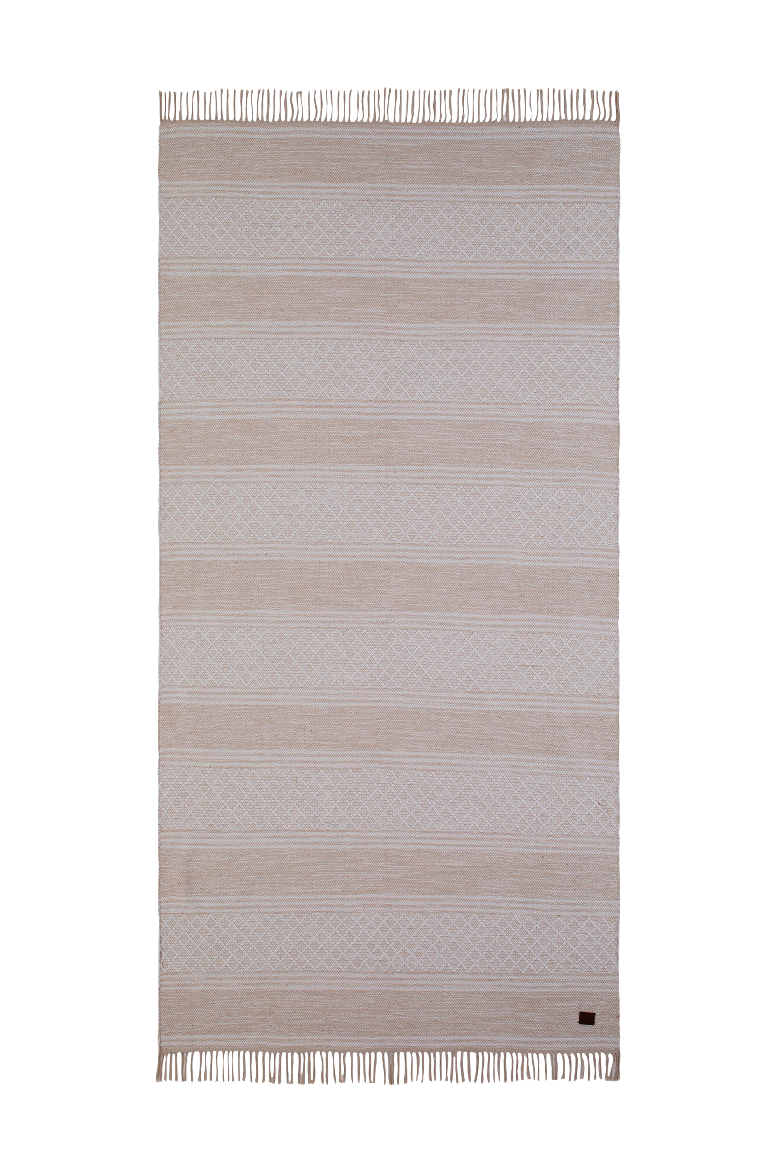 Garnmattan solhaga är en serie mönstrade bomullsmattor med den klassiska fransen. Då solhaga är vändbar och kan användas på båda sidor ger det mattan en lång levnadslängd eftersom man på så sätt får två mattor i en. Garnmattor är ett klassiskt inslag i det svenska hemmet och passar lika bra i köket som sovrummet eller hallen. detta är en handvävd bomullsmatta vilket gör att mönster och färg kan variera, vilket gör varje matta unik. Mattan är vävd i ren bomull vilket gör att den både är mjuk, tålig och slitstark. Den skapar en ombonad känsla som livar upp och samtidigt dämpar ljud. Tips! Ett mattunderlägg kan med fördel användas för att hålla mattan på plats. För att öka mattans livslängd är det viktigt att hålla den ren. Dammsug och vädra mattan regelbundet. Material: bomull tjocklek: ca 7 mm tvättråd: trasmattor bör handtvättas i kallt vatten med såpa eller milt rengöringsmedel. Skura med en mjuk borste i rändernas riktning på båda sidor och skölj därefter och låt mattan plantorka. Mattan kan bli något bubblig vilket dock försvinner efter några dagars användningVarje matta tillverkas för hand och därför är ingen matta den andre lik. Det kan därför förekomma små differenser i färg samt storlek. Storleksvariationen kan vara 3-5% av angivet mått.