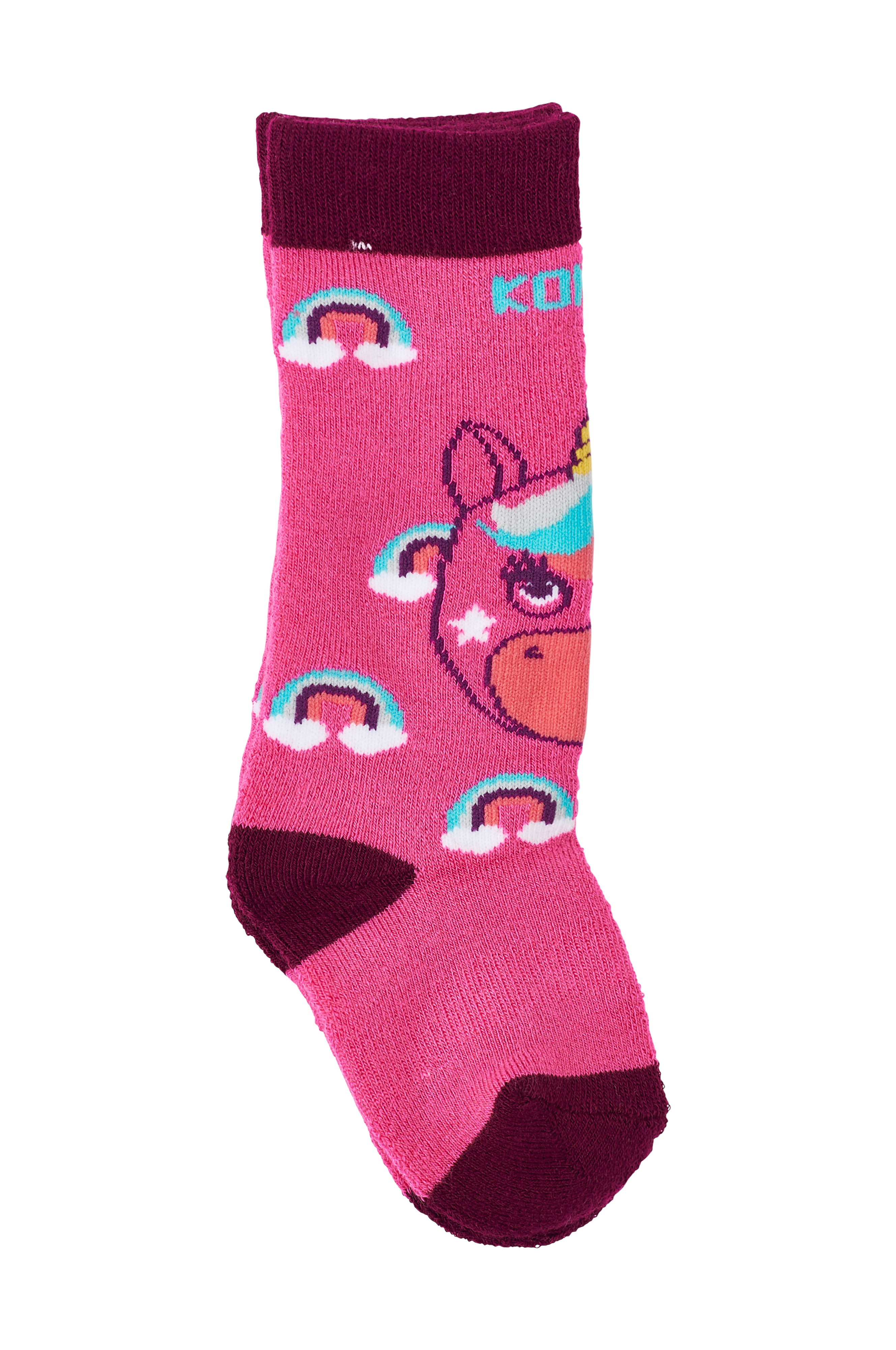 Strumpor The Imaginary Friends från Kombi i mjuk, lite tjockare kvalitet med stickat djurmönster. Längre modell med ribb upptill.