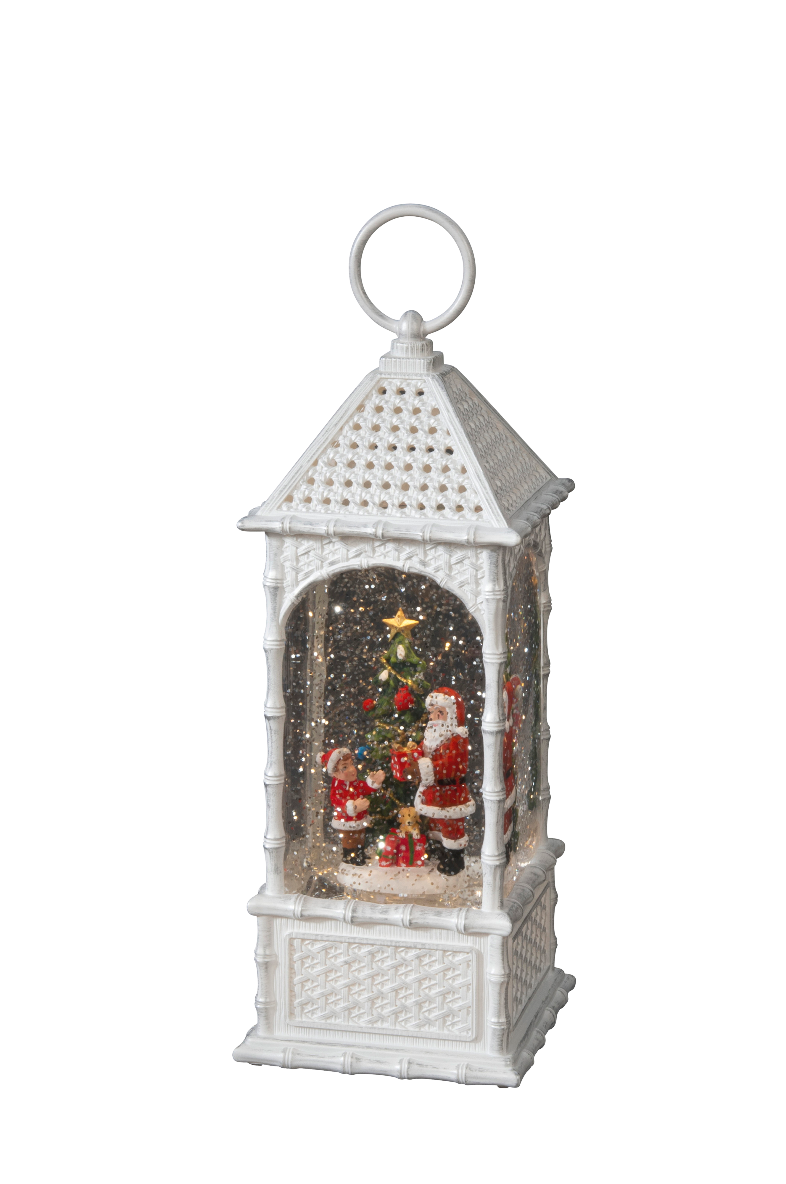 Dekorera inför julen med den här glittrande vattenfyllda lyktan med tomtemotiv. Den har en led-lampa med en timer på 5 timmar och en usb-kabel ingår. Den glittrande vätskan rör sig när lyktan tänds. Lyktan är 10,5 cm bred och 27 cm hög, drivs av 3xc-batterier (ingår ej) med en brinntid på ca 260 timmar. Placera den på ett bord eller en hylla för en mysig julstämning.