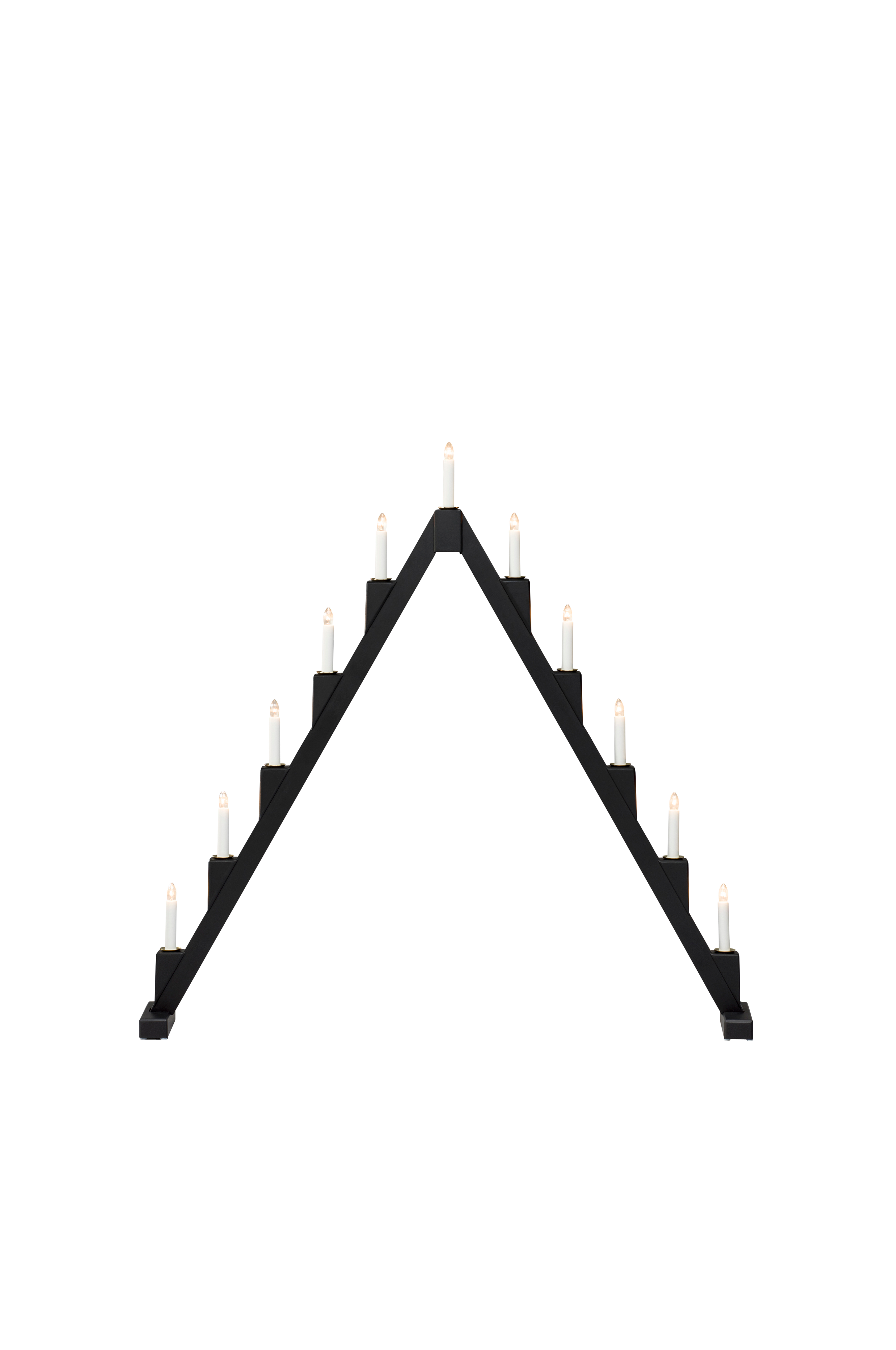 En 11-armad elljusstake i vitlackerat trä och mässingsfärgade deko ringar 230V. Vikbar med varmvita lampor. Anslutningssladd på 1,7 meter med sladdströmbrytare för manuell avstängning/påslagning. Höjd 82 cm och bredd 86 cm.
