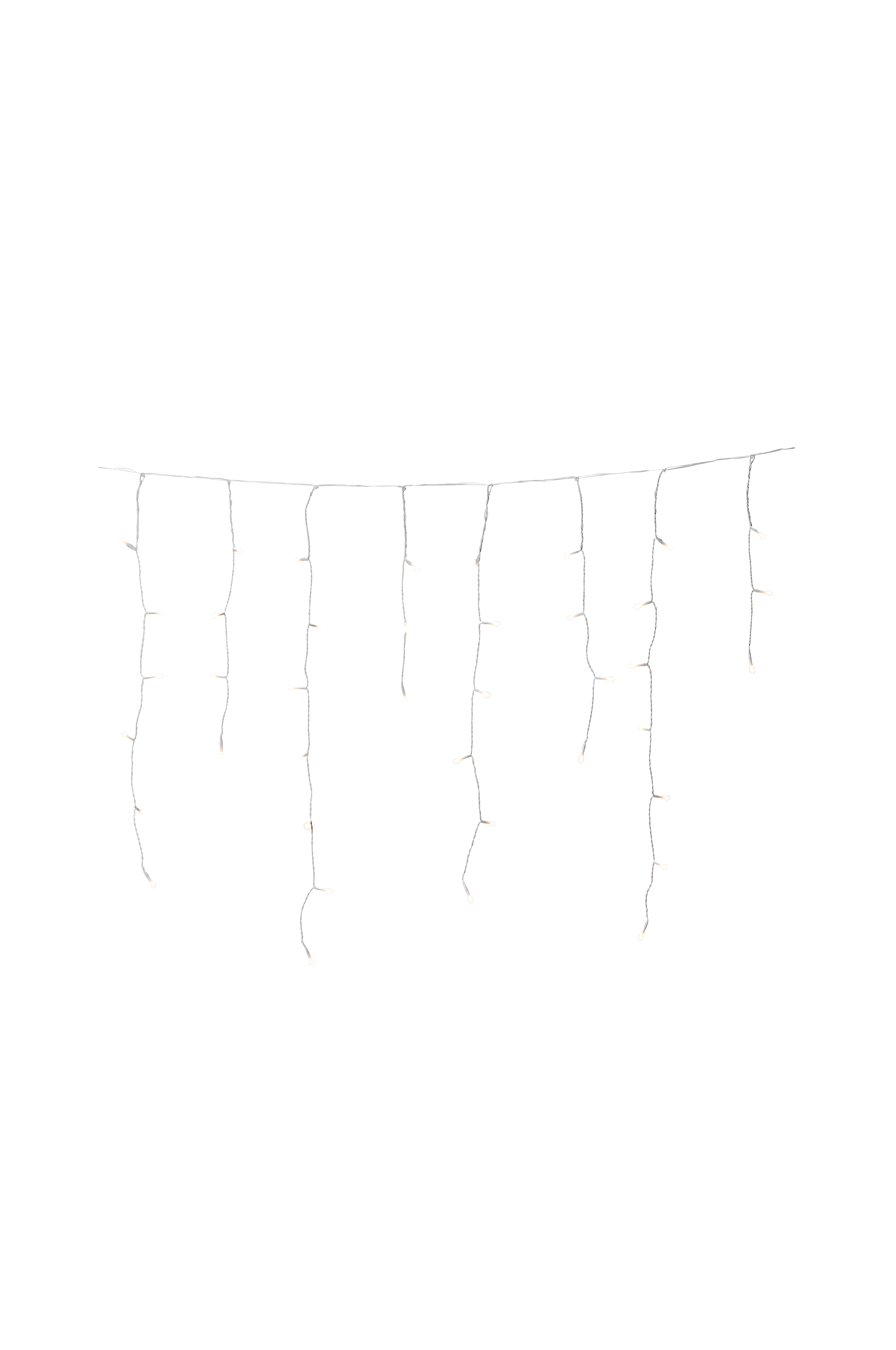 Istappsslinga med 80 varmvita LED frostad topp. Skymmningssensor och timer 6/9h. Drivs med 2xD batterier. Vit kabel. Anslutningskabeln är 0,5 meter vilket ger en totallängd på 3,5 meter.