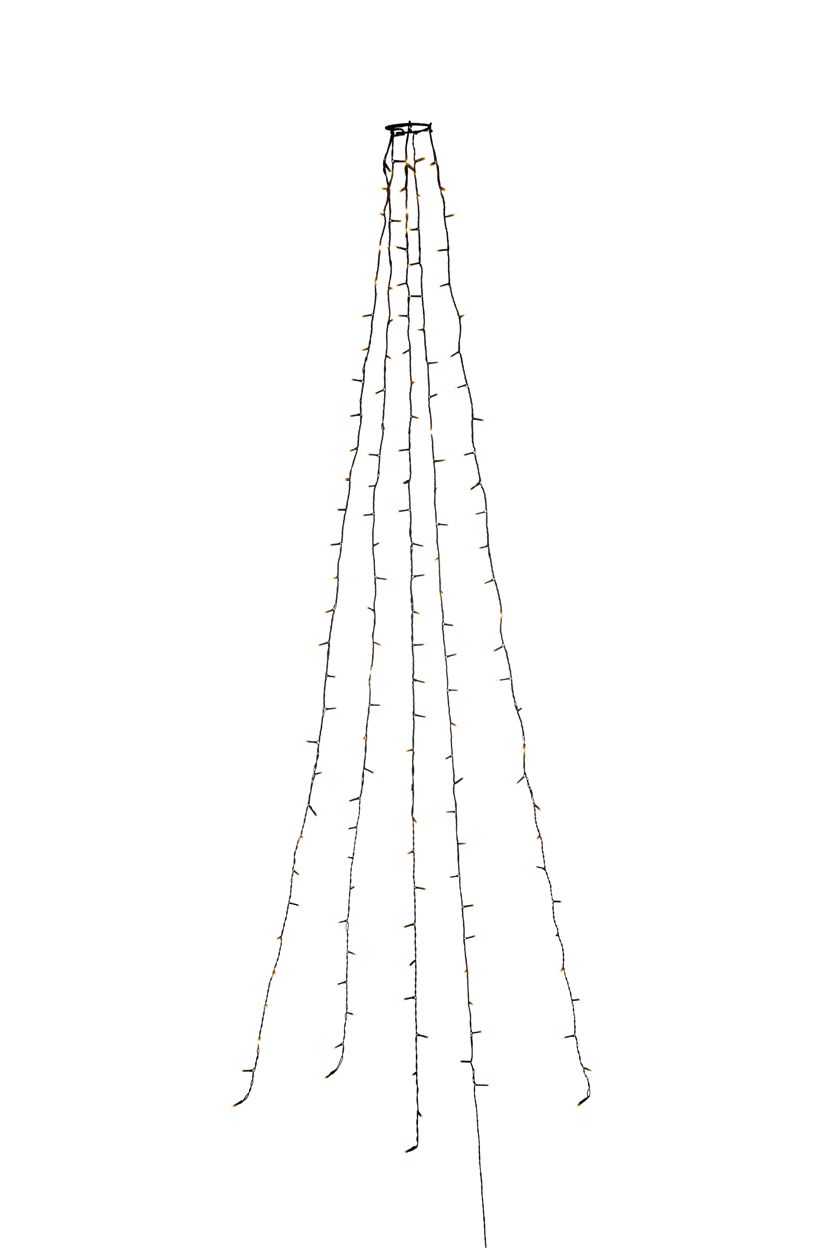 Julgransbelysning med 5x30 bärnstensfärgade lysdioder. Designad för att draperas över trädets topp för att fördela ljusen jämnt. Den mörkgröna kabeln är 180 cm hög med en 500 cm lång anslutningskabel. Drivs av en 24v transformator. Endast för inomhusbruk.